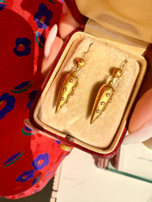 Victorian Blue Enamel & Pearl Earrings, 18k