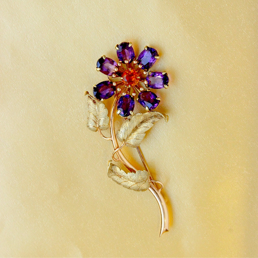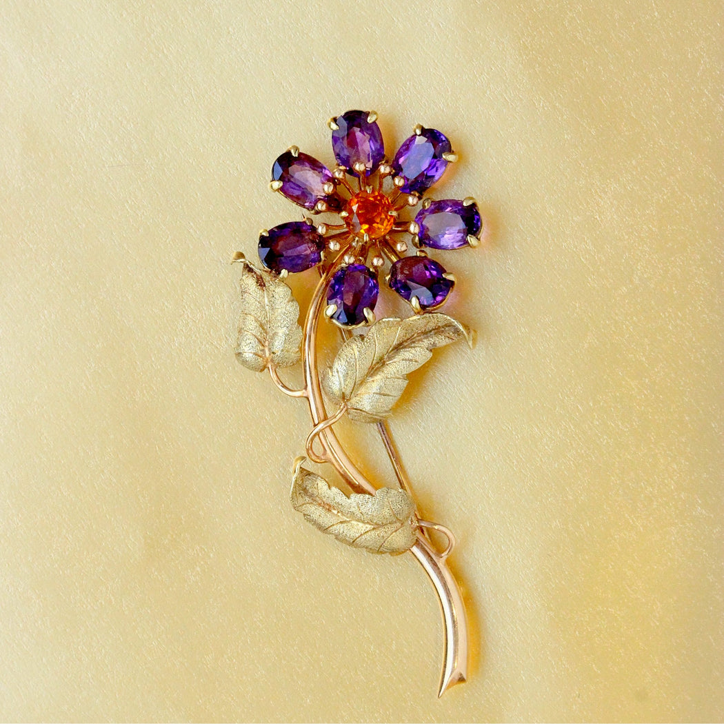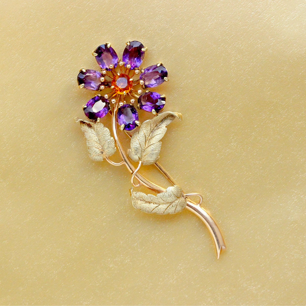 Vintage Amethyst & Citrine Flower Pin, 14k