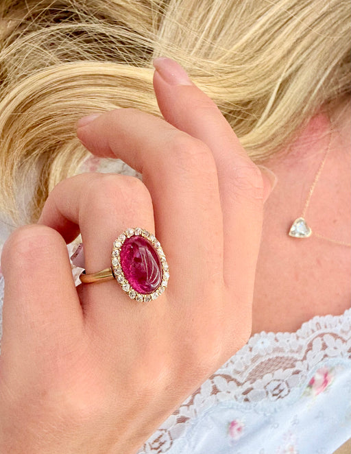 Victorian 0.25ct Ruby & Diamond Navette Ring, 18k