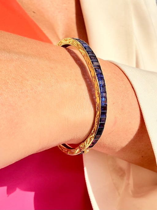 Blue Sapphire & Diamond Bangle Bracelet, 14k
