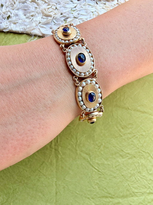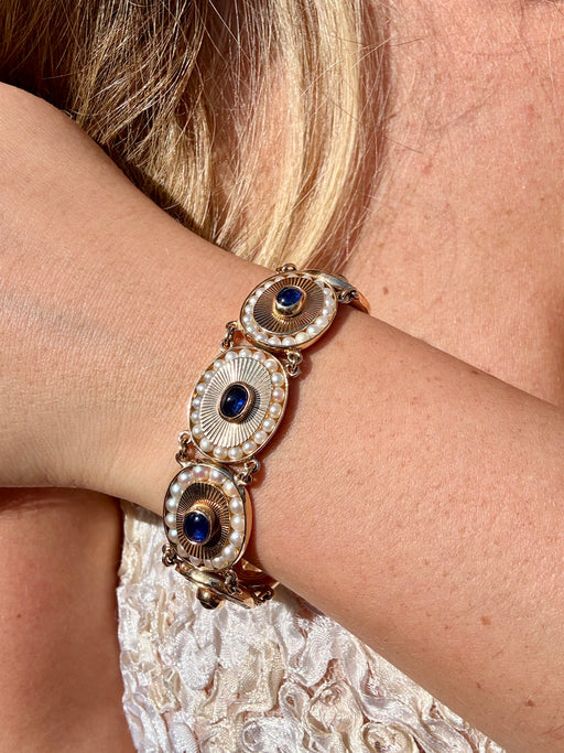 Blue Sapphire & Diamond Black Enamel Bracelet, 18k
