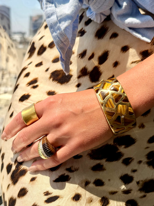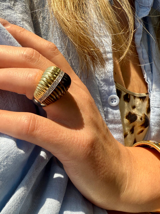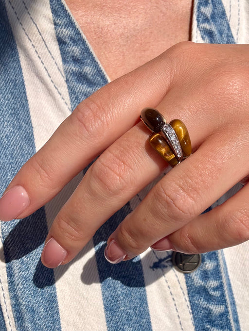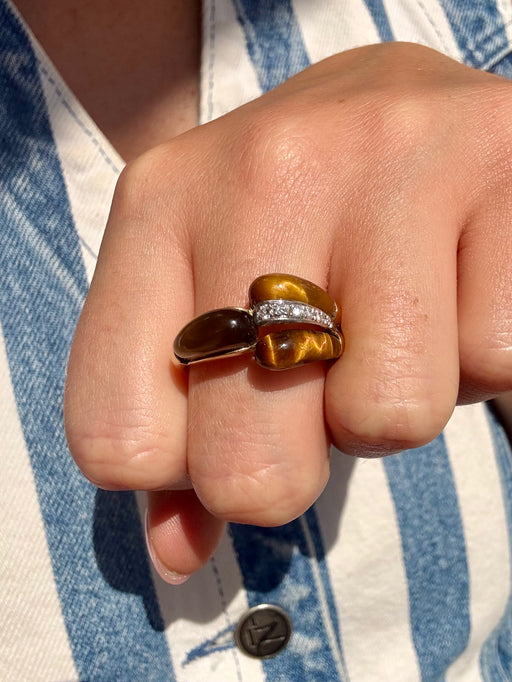 Tiger Eye & Diamond Ring, Two Tone 14k & Platinum