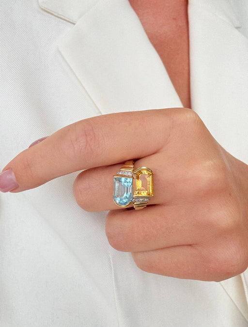 Citrine & Aquamarine and Diamond Ring, Two Tone 14k & Platinum