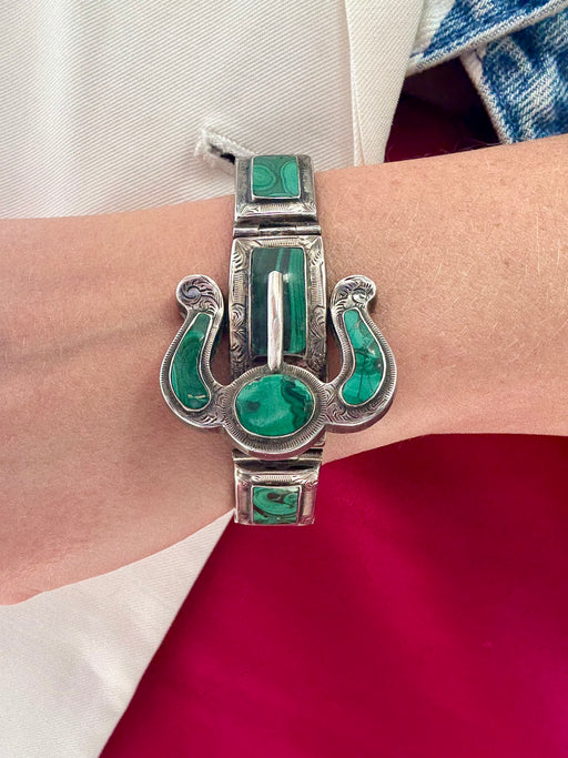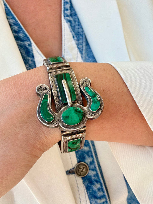 Malachite Buckle Bracelet, Sterling Silver