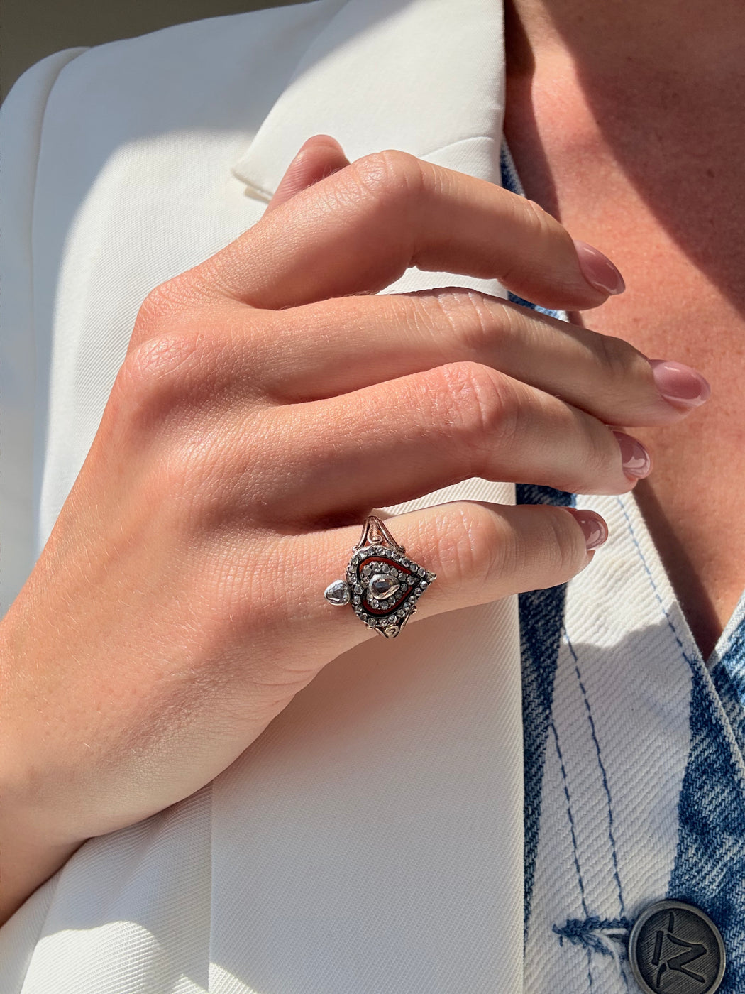 Georgian Heart Diamond Ring, Two Tone 18k & Sterling Silver