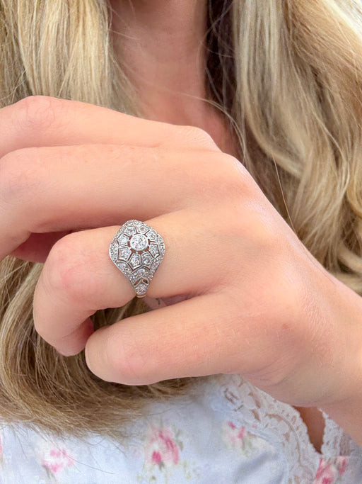 Art Deco 0.90ct Old Mine Cut Diamond Ring, Platinum