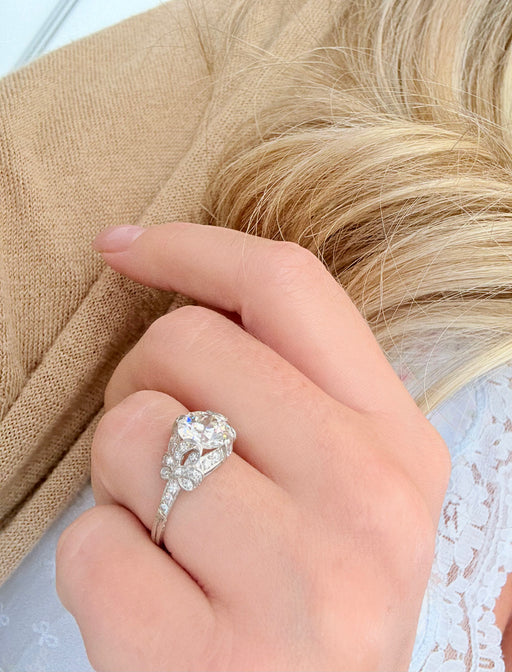 Art Deco Diamond 2.25ct European cut Ring, Platinum