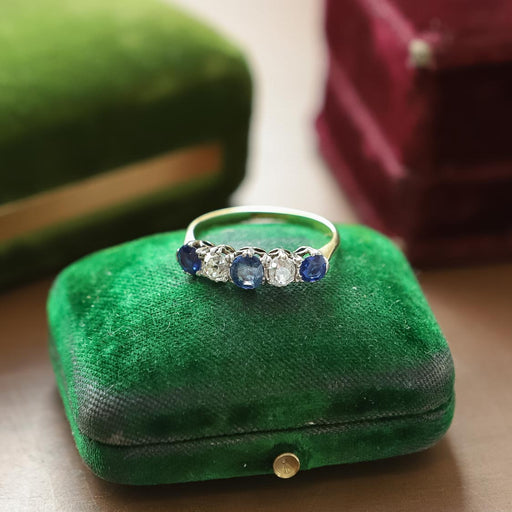 Edwardian Sapphire & Diamond Half Hoop Band, Platinum & 18k