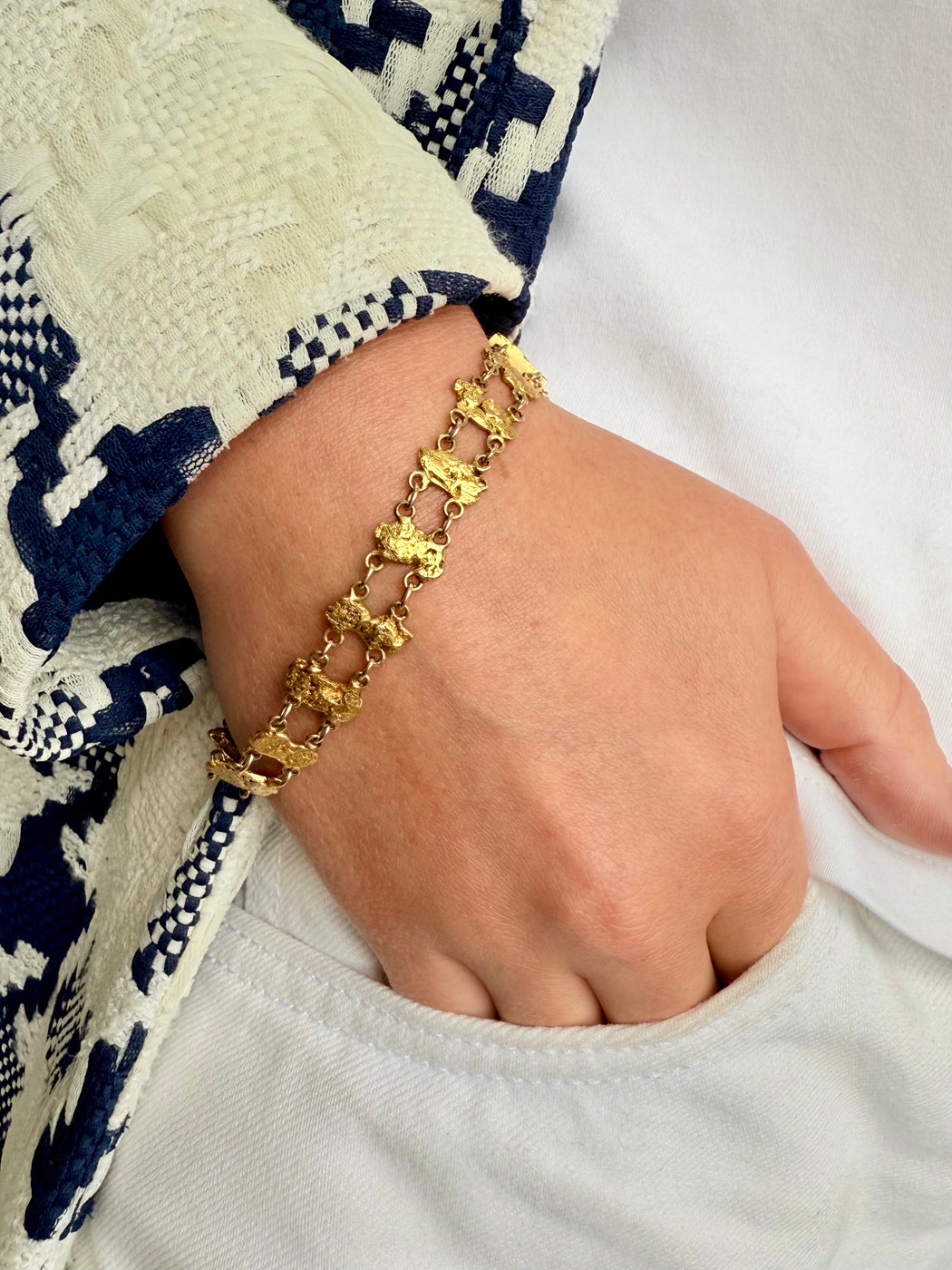 24k Gold Nuggets Bracelet, 14k