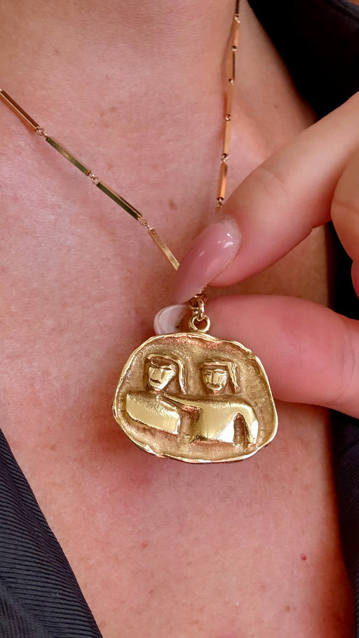 Plique-à-jour Spanish Enamel Geminis Zodiac Sign, 18k