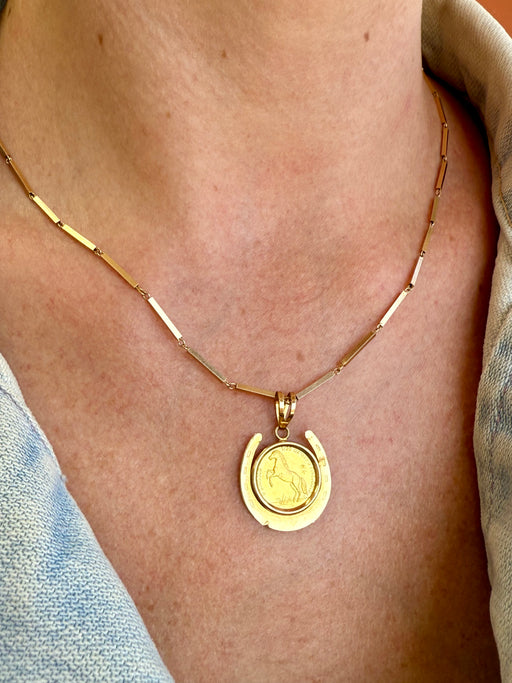 Blue Sapphire & Diamond Horseshoe Charm, Two Tone 14k