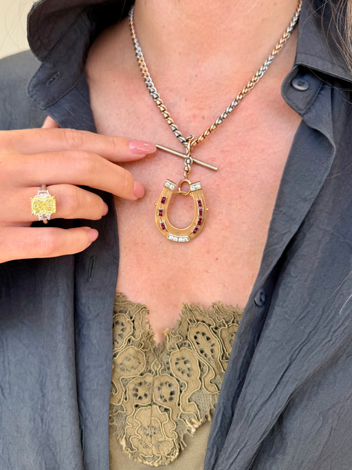 Ruby & Diamond Horseshoe, Two Tone 14k Matte finish