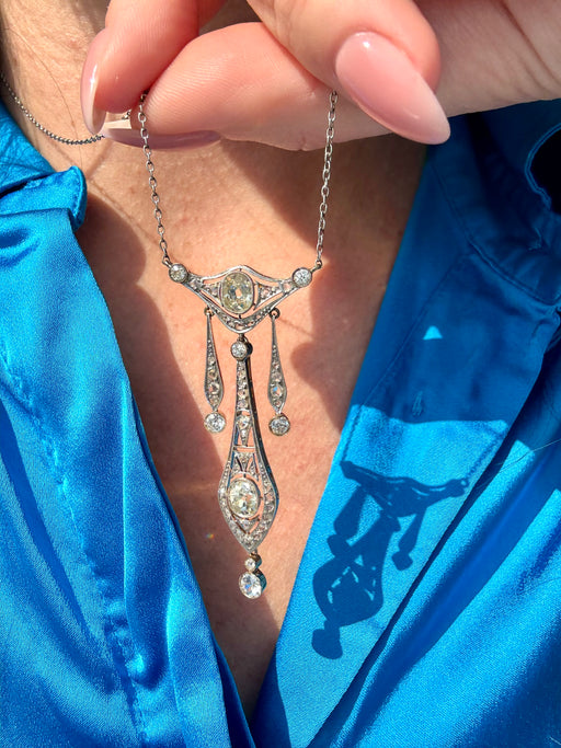 Art Deco Diamond Pendant, Two Tone 14k & Platinum