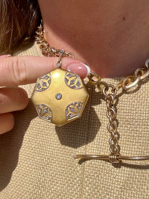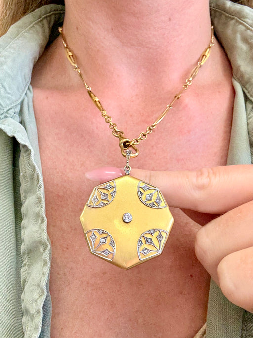 Victorian Diamond Locket Charm, Two tone 14k & Platinum
