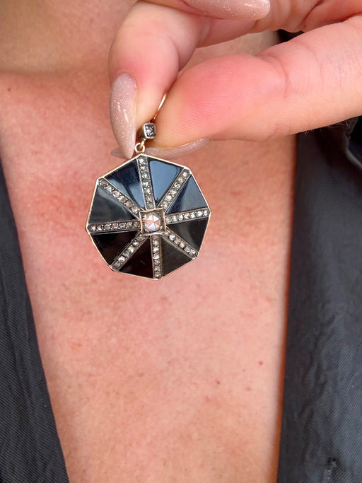 Rose Cut Diamond & Black Enamel Snowflake Charm, 14k & Sterling Silver