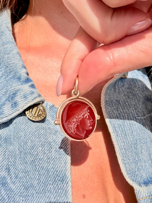 "Plus que Hier, Moin que Demain" Ruby & Diamond Charm, 18k
