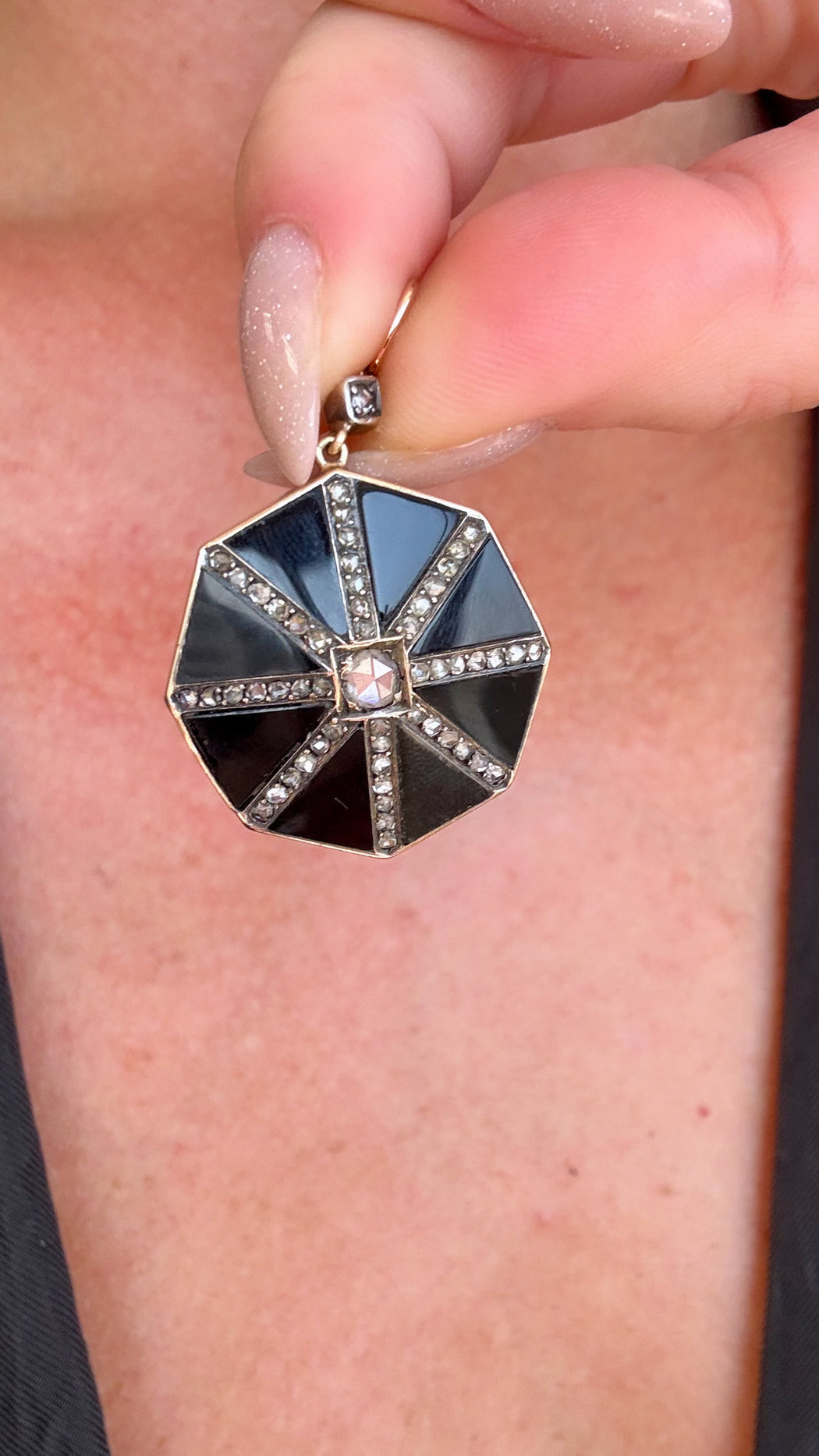 Rose Cut Diamond & Black Enamel Snowflake Charm, 14k & Sterling Silver