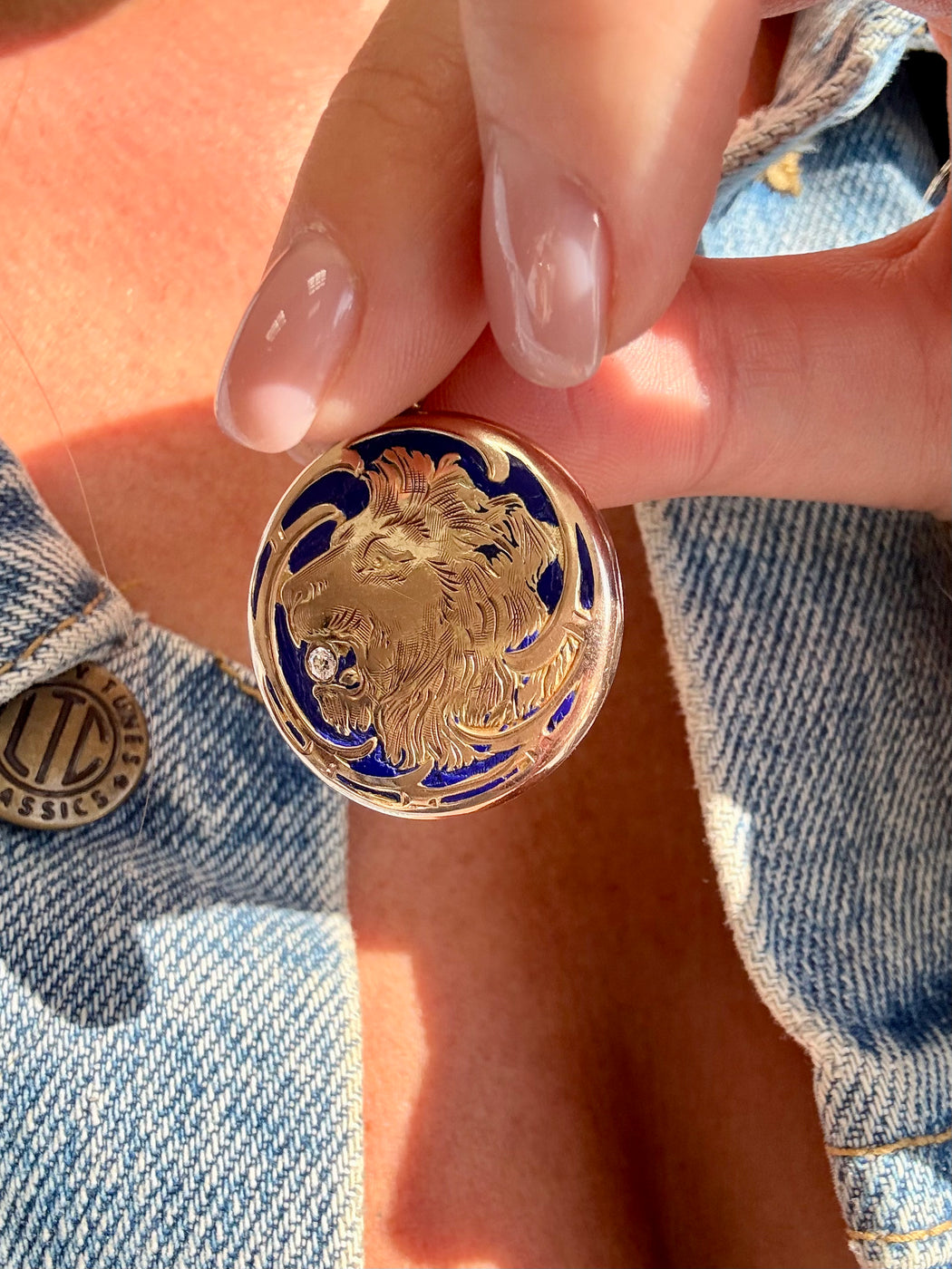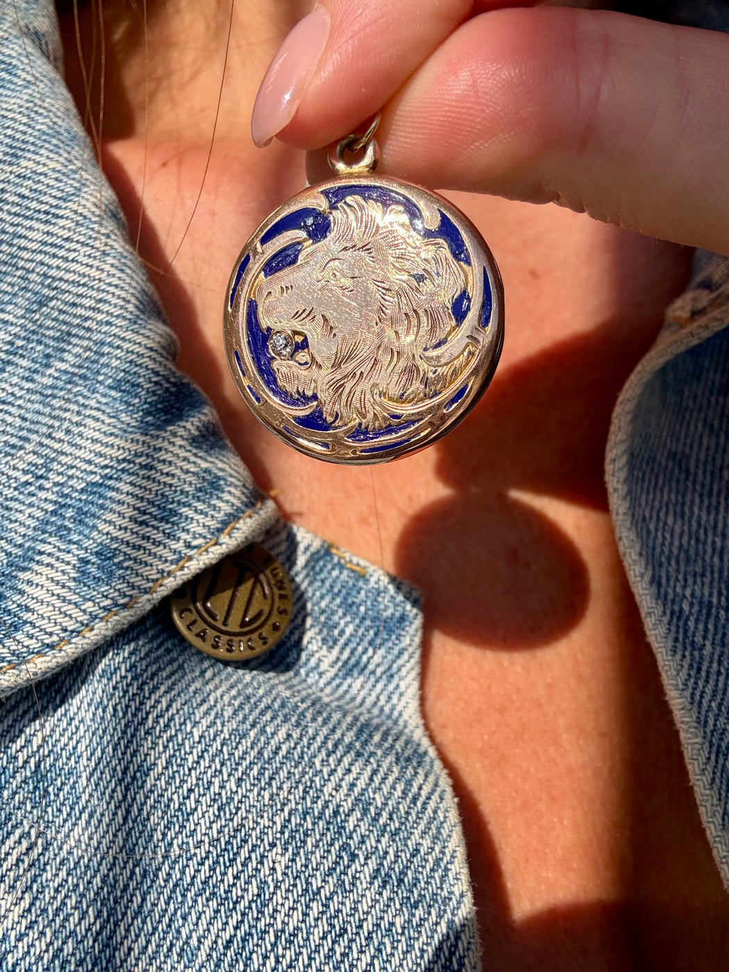 Blue Enamel & Diamond Lion Locket Charm, 14k