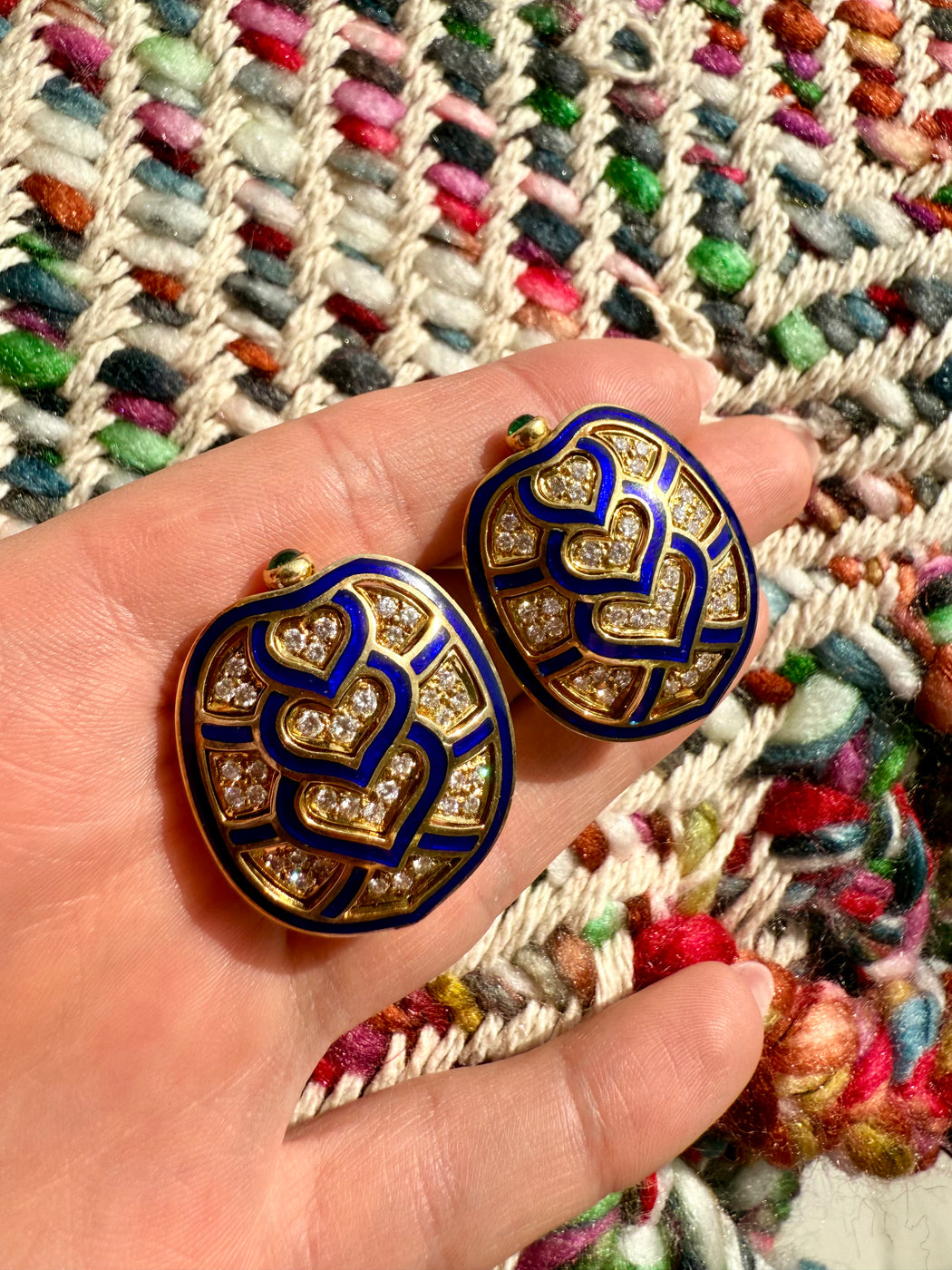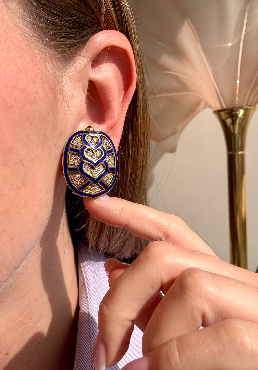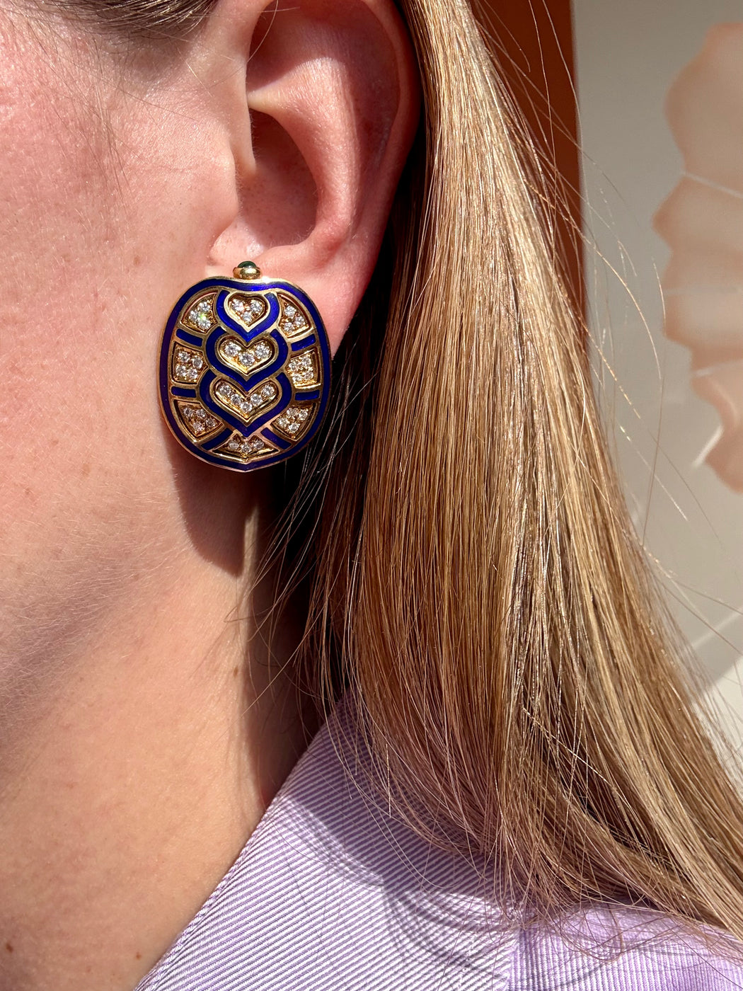Judith Leiber Blue Enamel Diamond Earrings, 18k