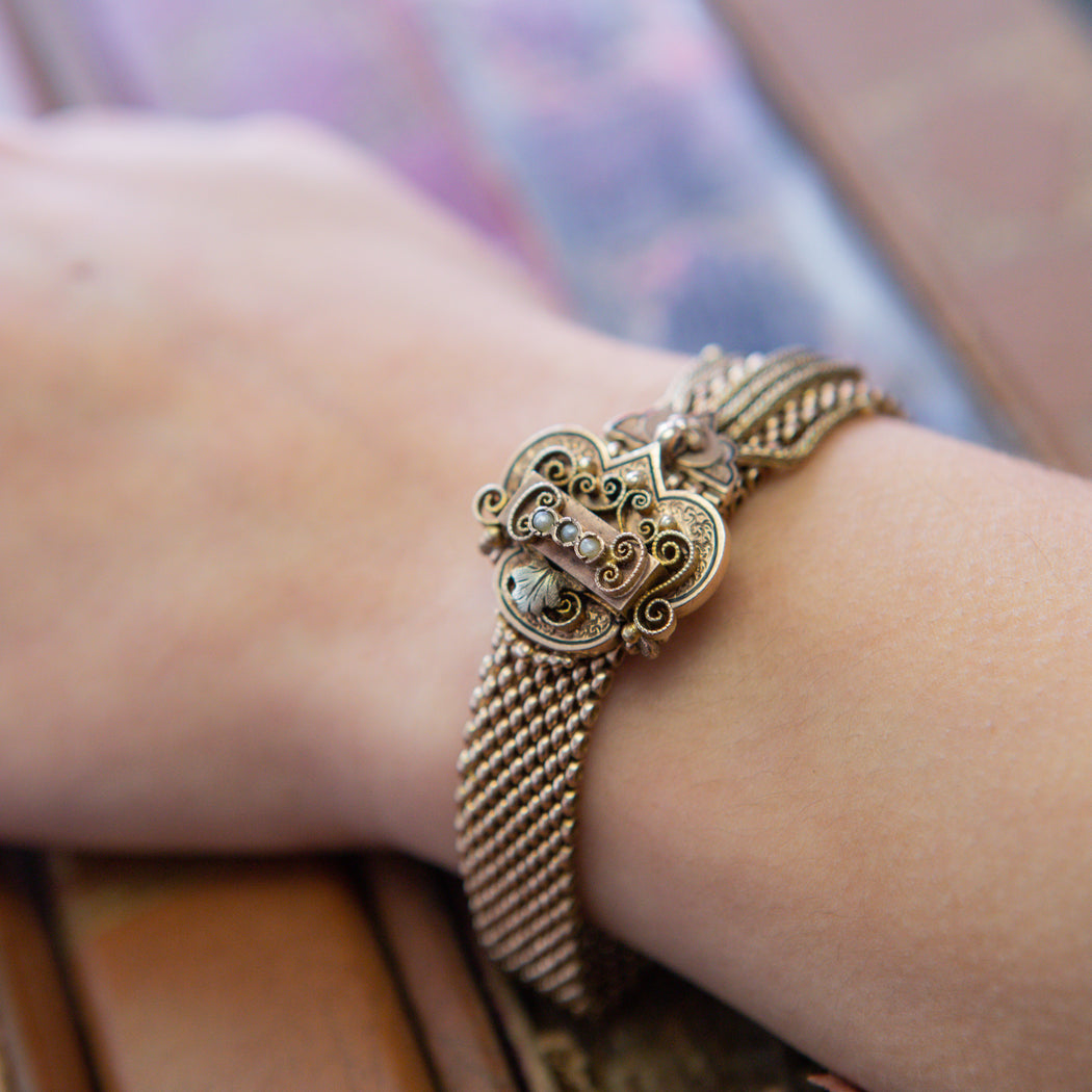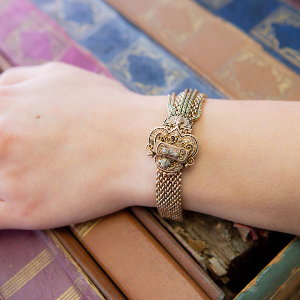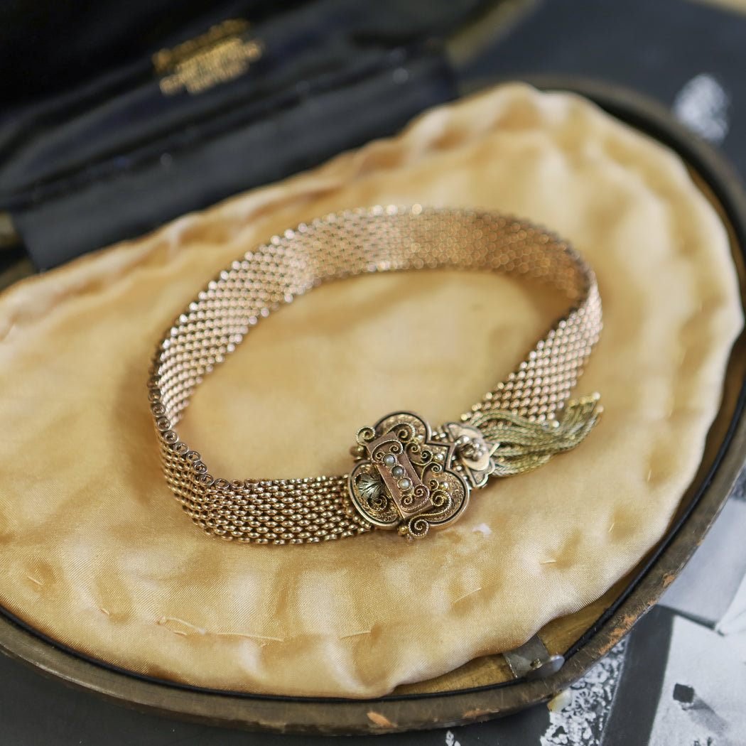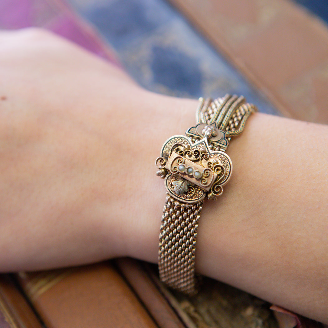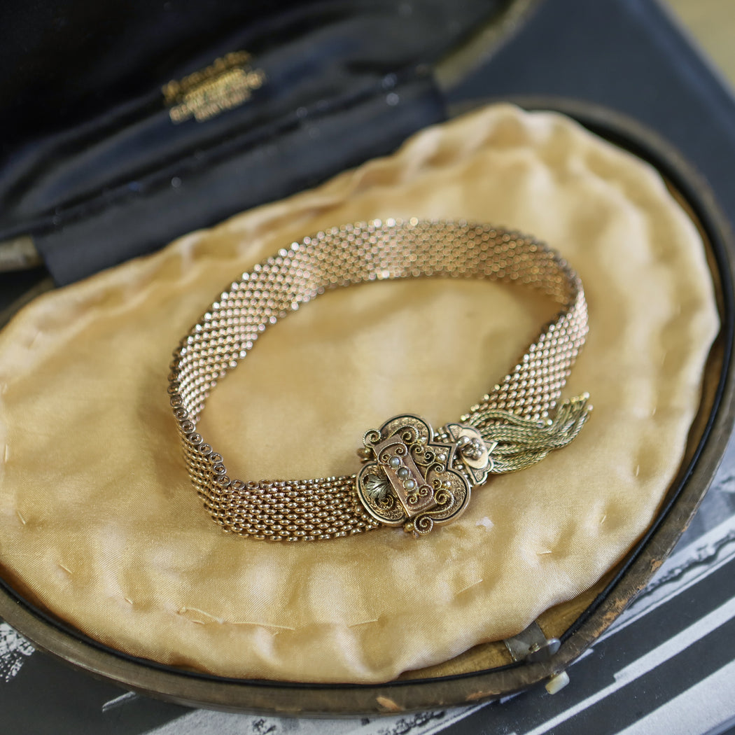 Victorian Slide Tassel Bracelet with Black Enamel and Pearls