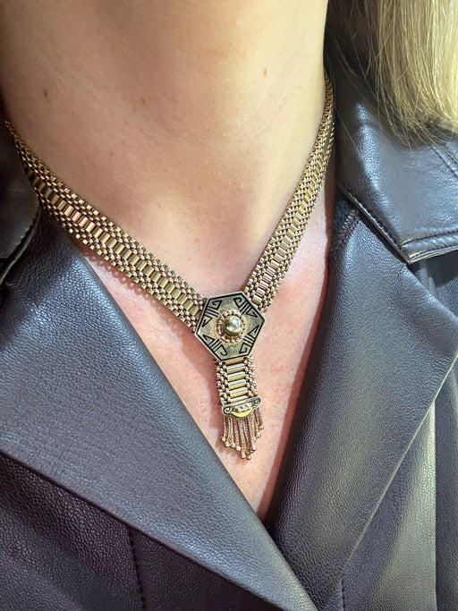 Black Enamel Tassel Necklace, 14k