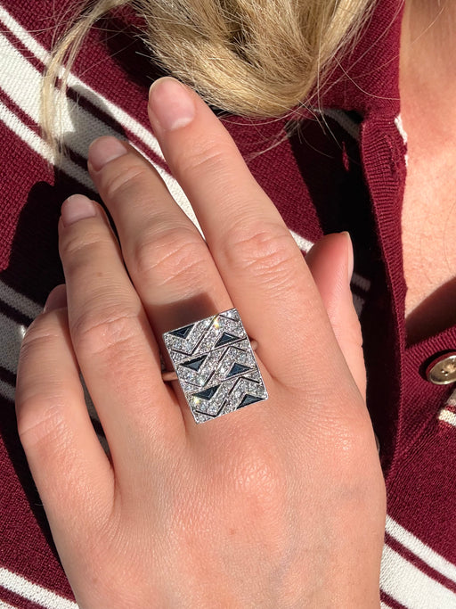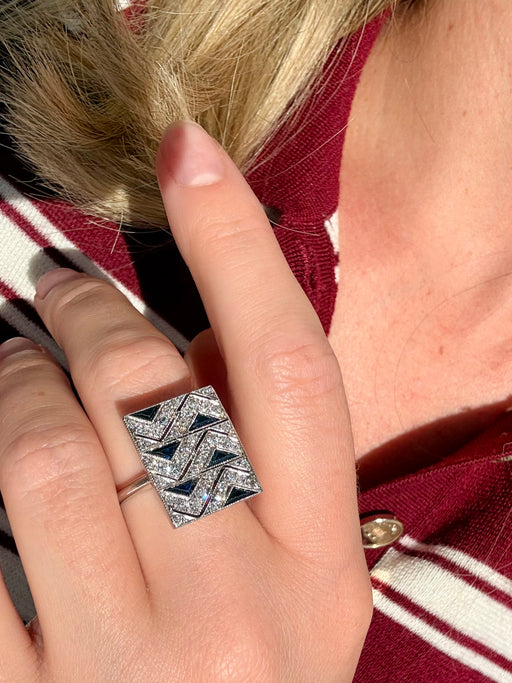 Art Deco Blue Sapphire & Diamond Ring, Platinum