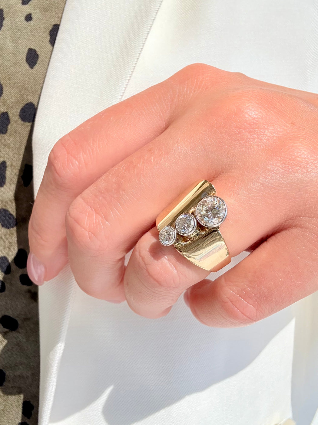 3 Stone 2.00ctw Diamond Abstract Ring, 14k