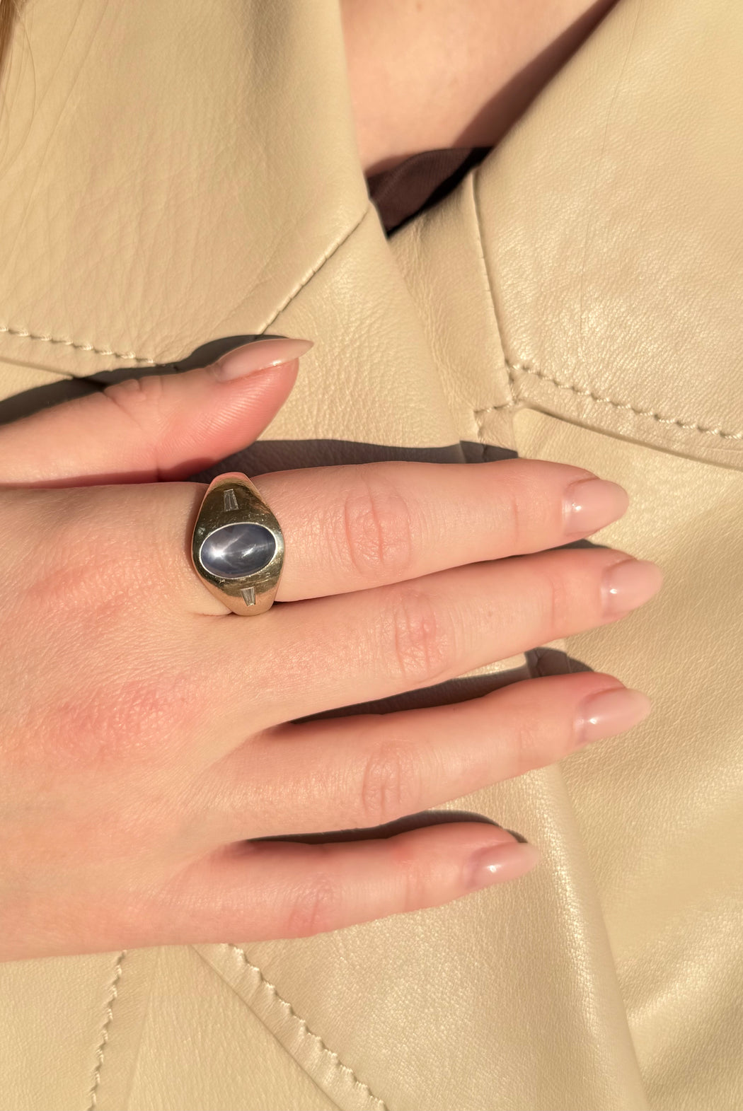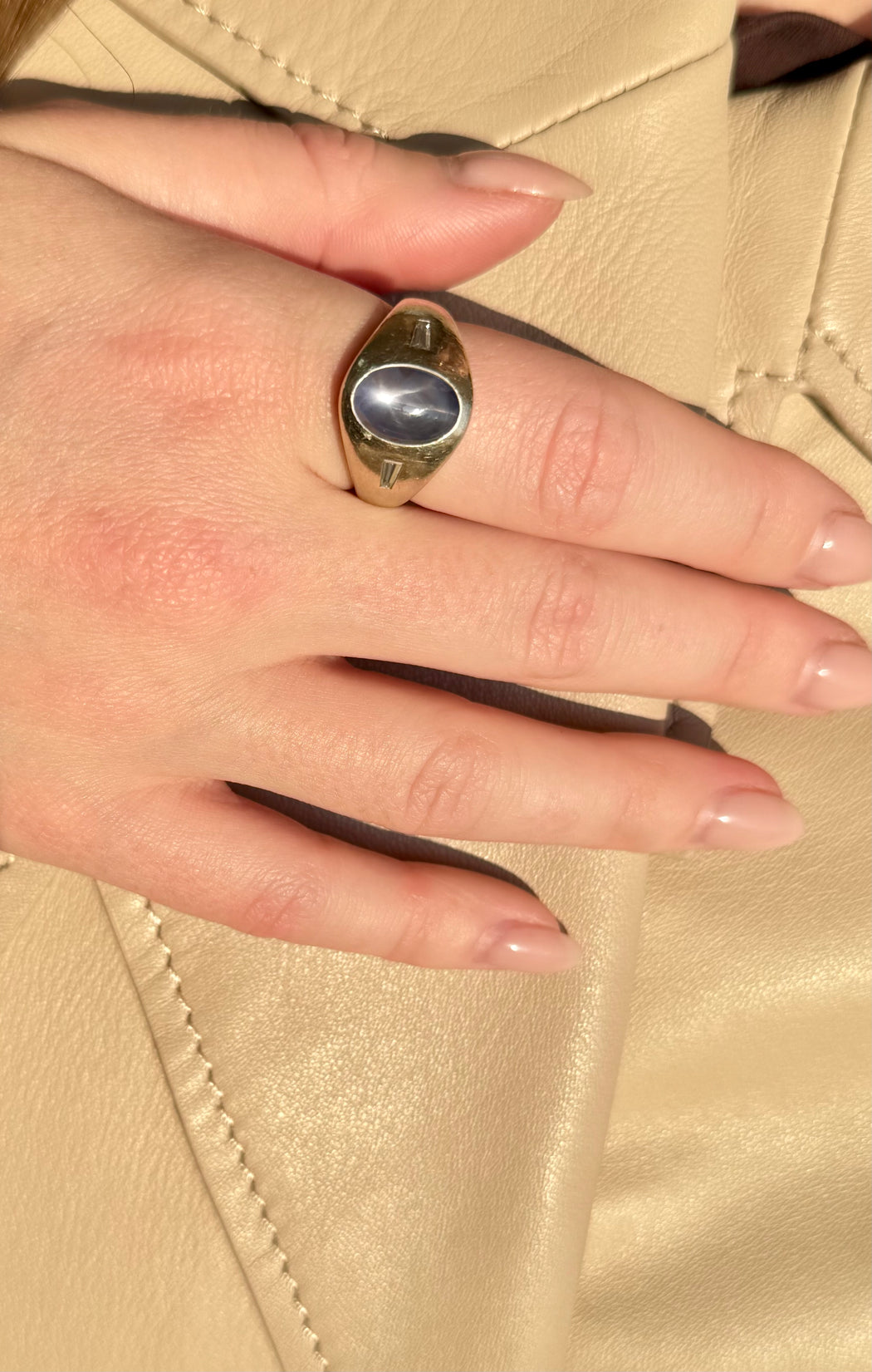 Cabochon Star Sapphire & Diamond Ring, 14k