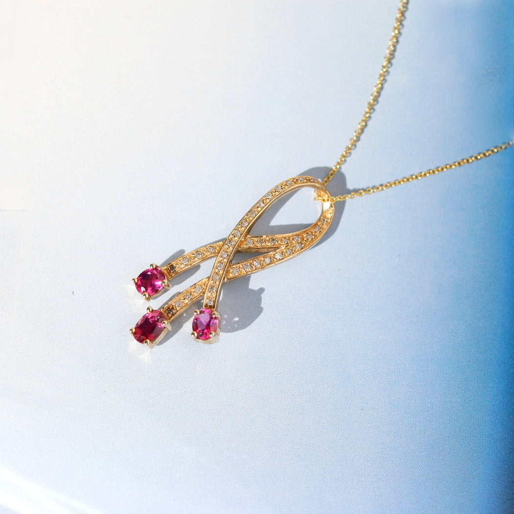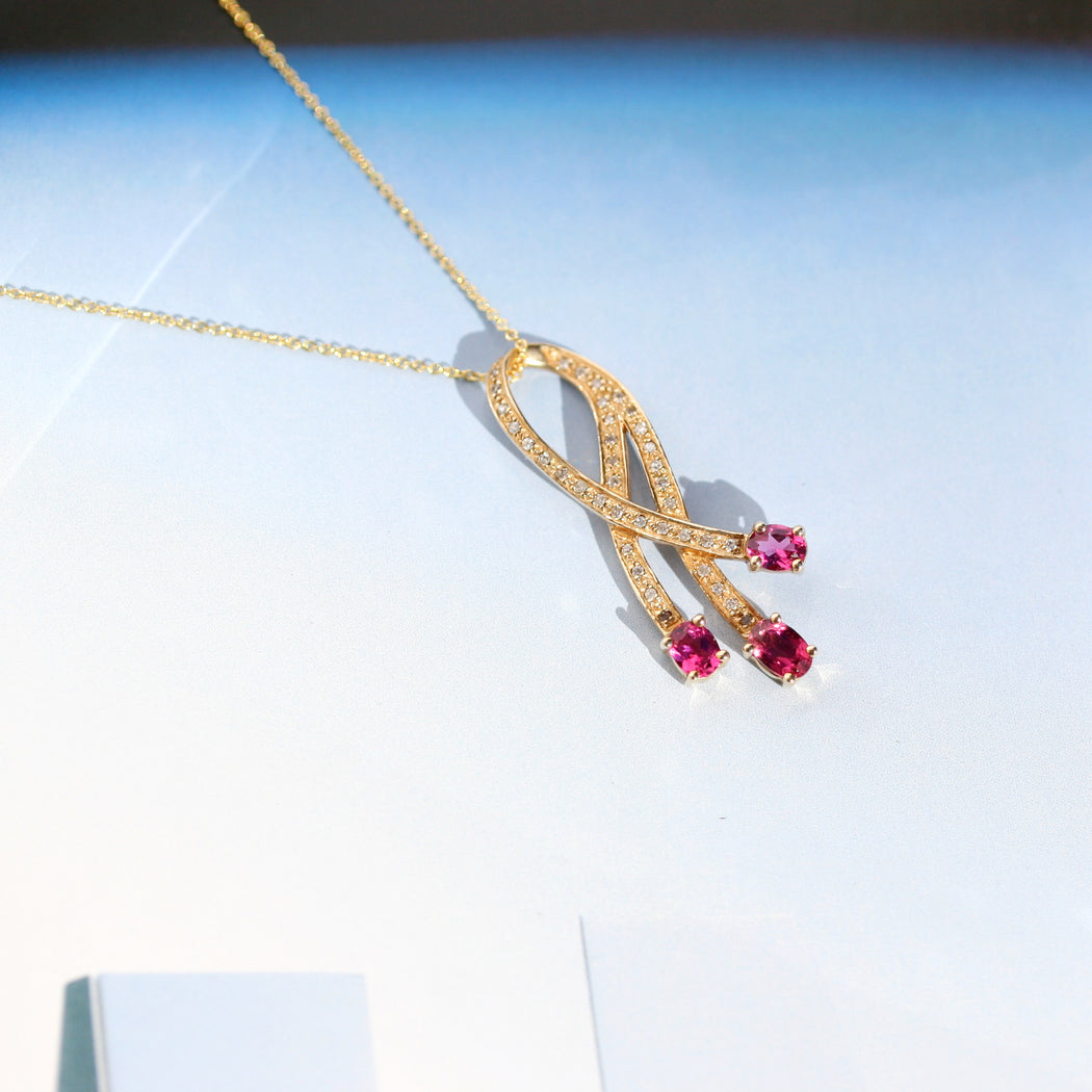 Pink Tourmaline & Diamond Swoop Pendant, 10k
