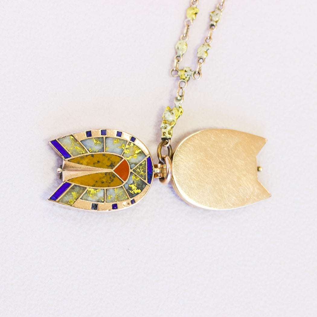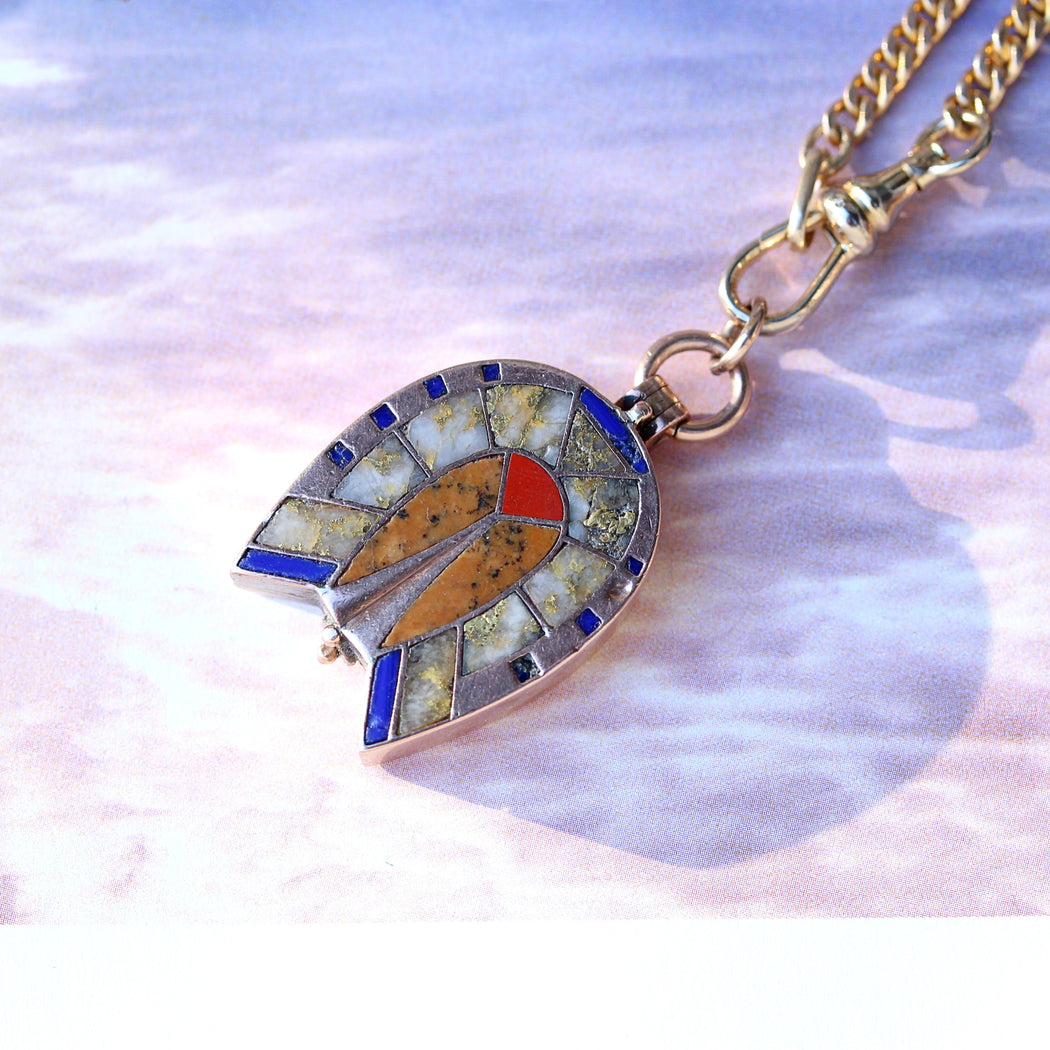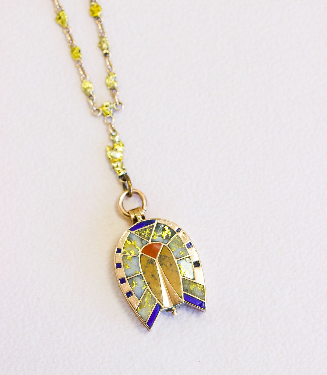 Victorian Gold Quartz Horseshoe Locket Charm, 14k