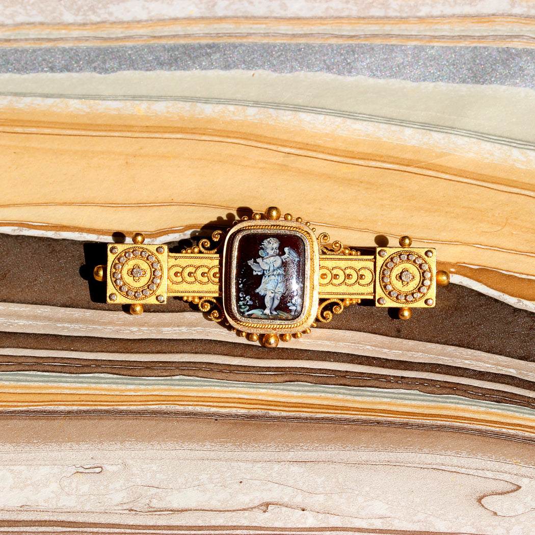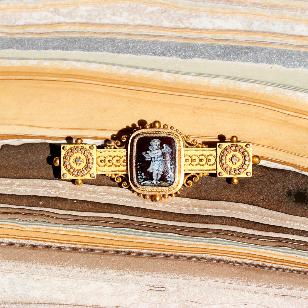Victorian Hand Painted Bar Pin, 14k