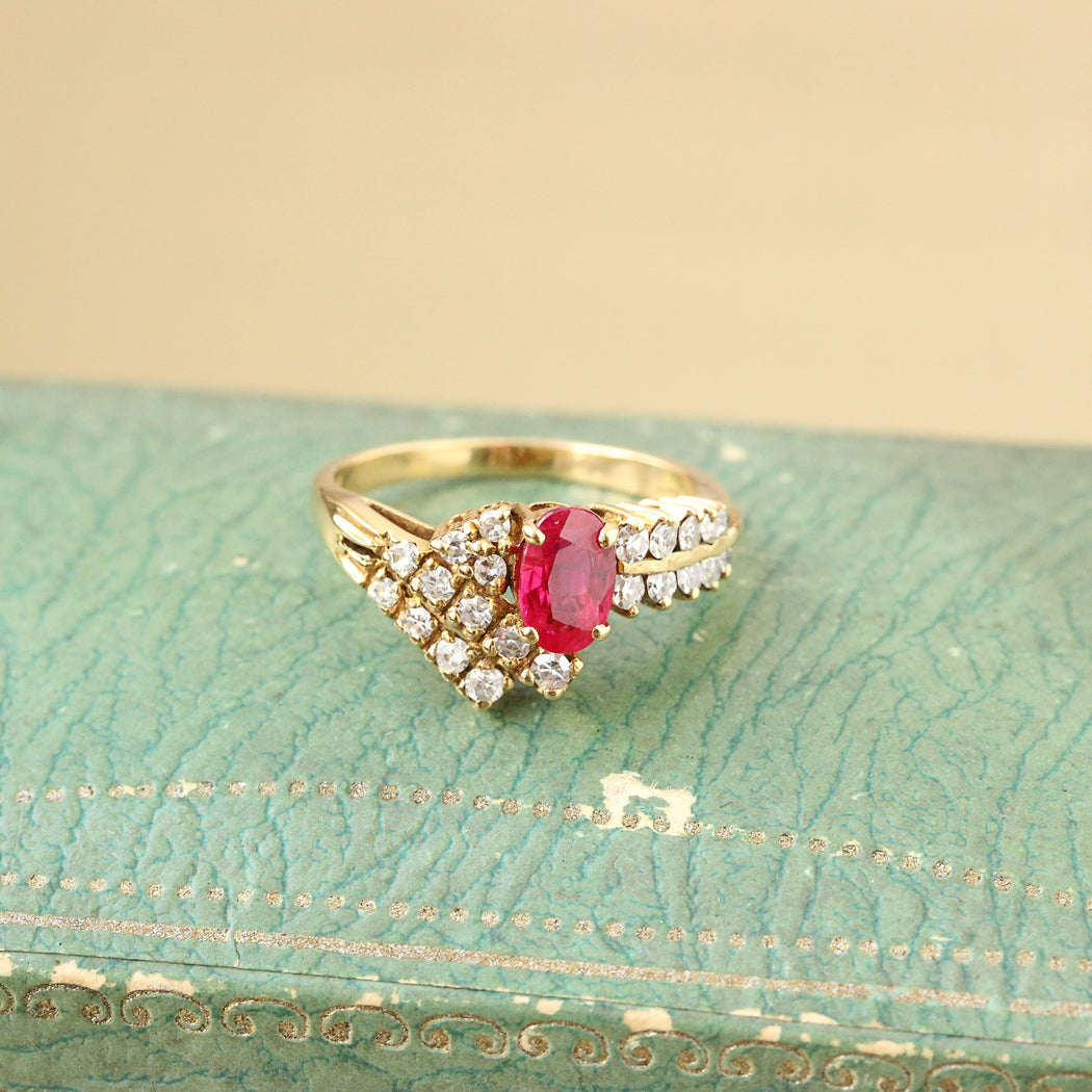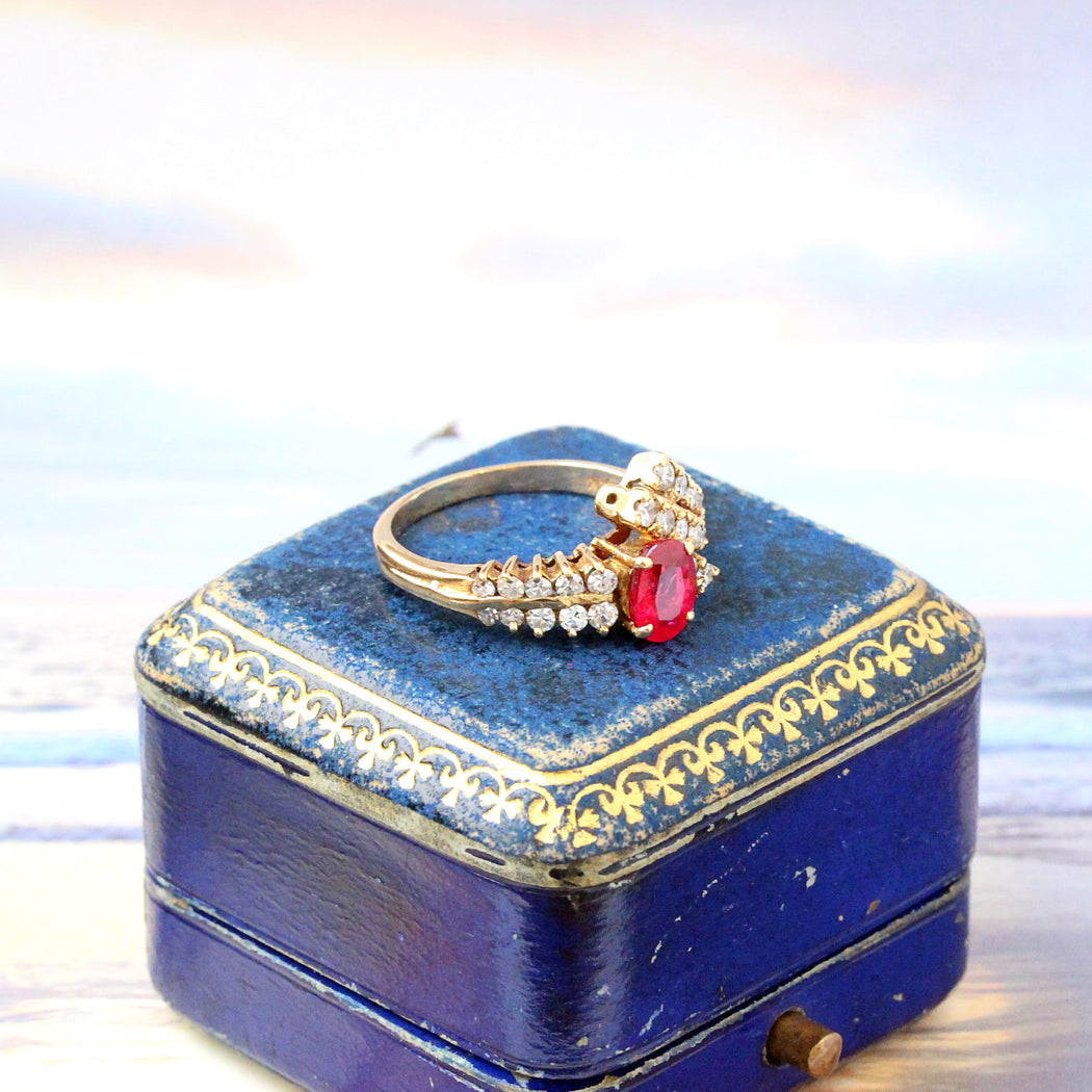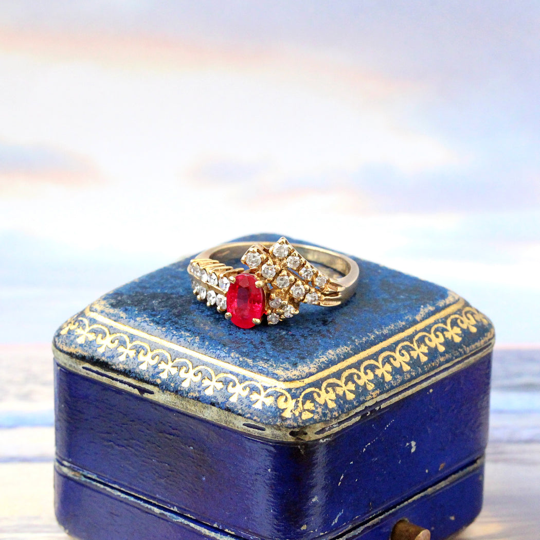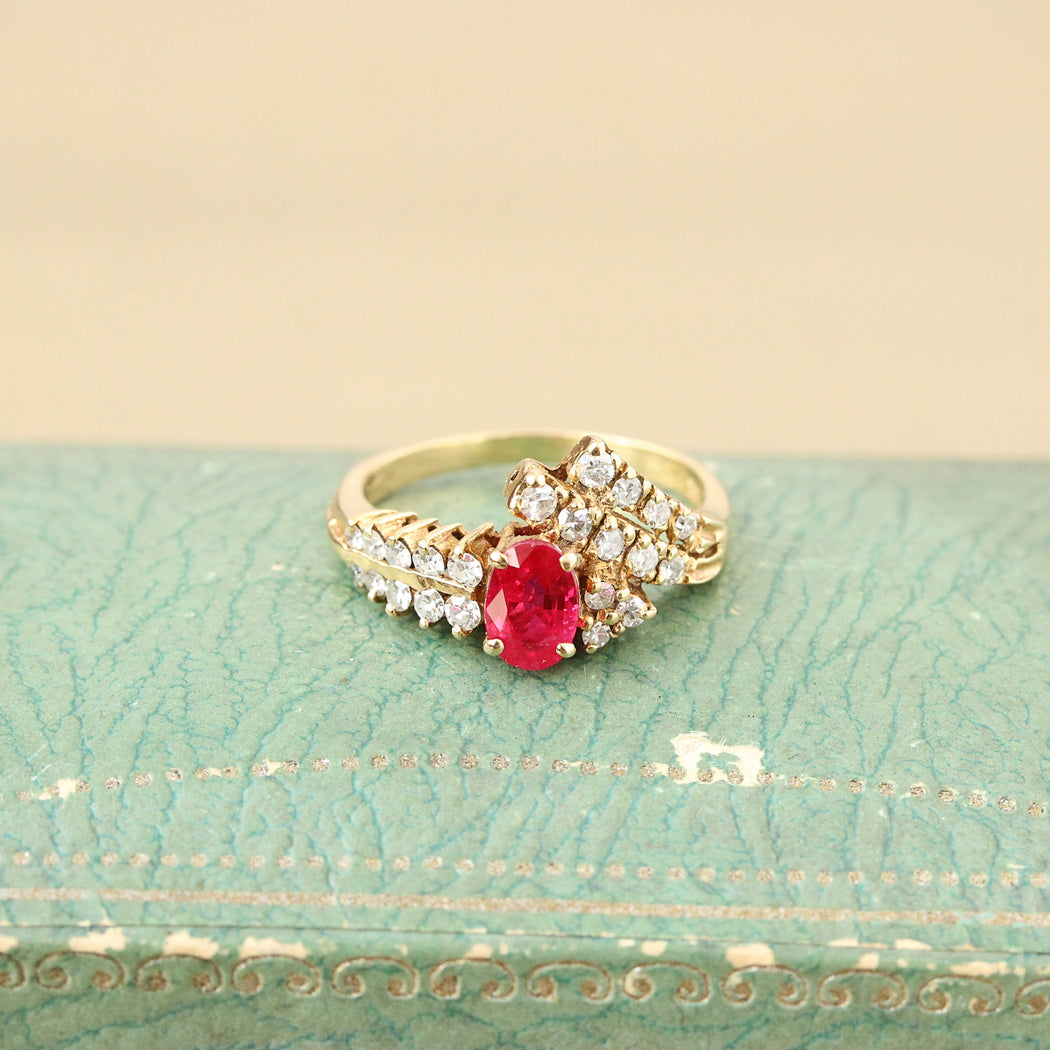 - Stones: 1.0ct Oval Ruby, 0.6 ctw, 22 Single cut Diamonds