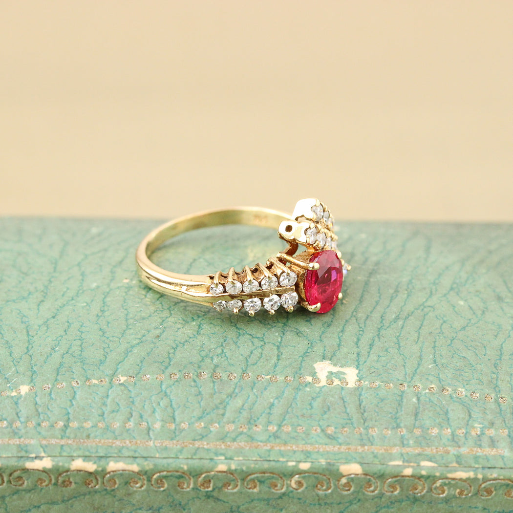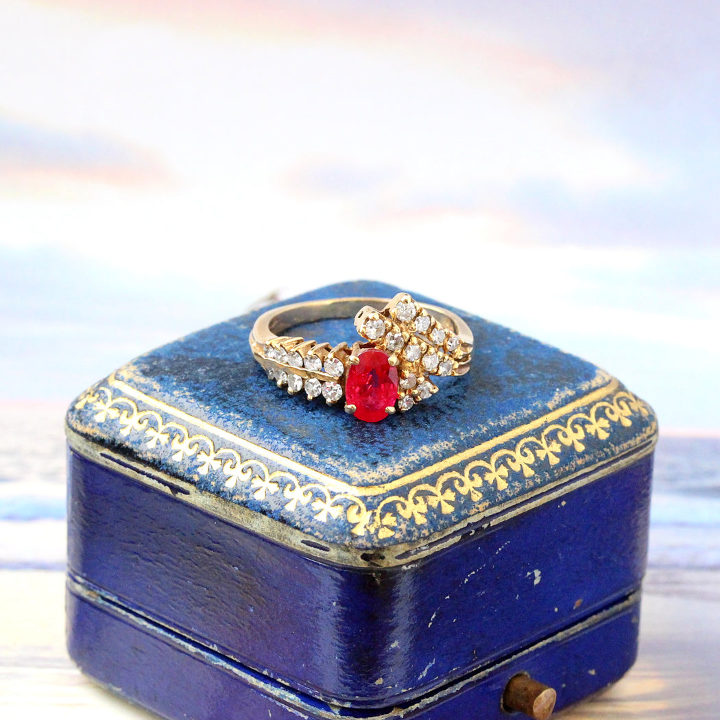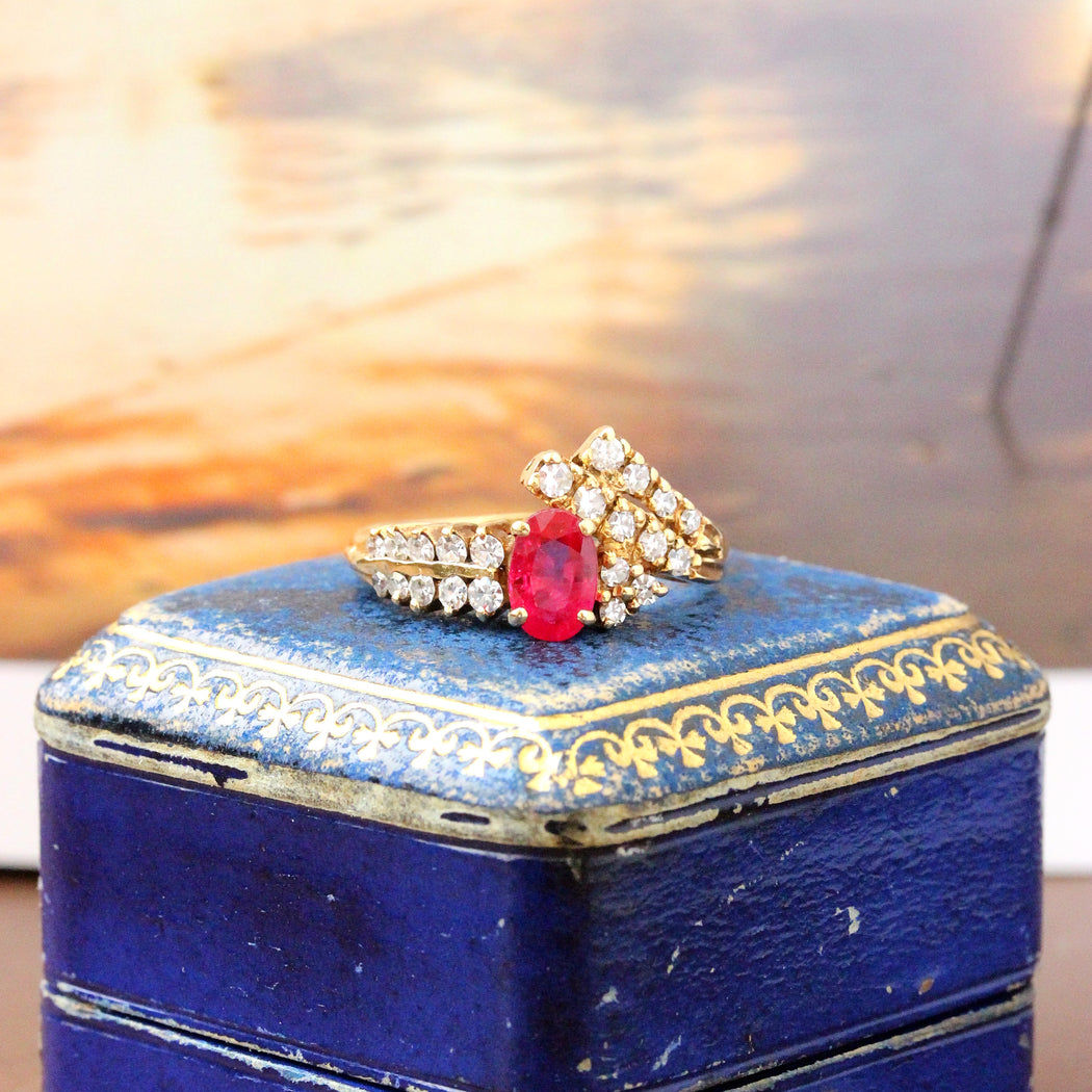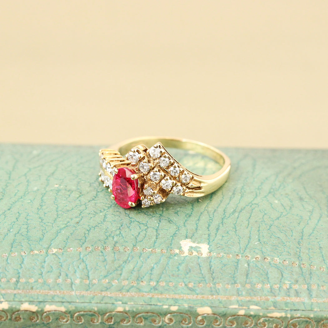 - Stones: 1.0ct Oval Ruby, 0.6 ctw, 22 Single cut Diamonds
