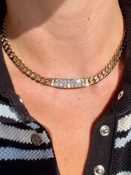 Curb Link Diamond Necklace, Two Tone 14k