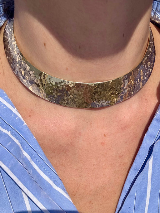 Wide Gold Collar Necklace, 14k