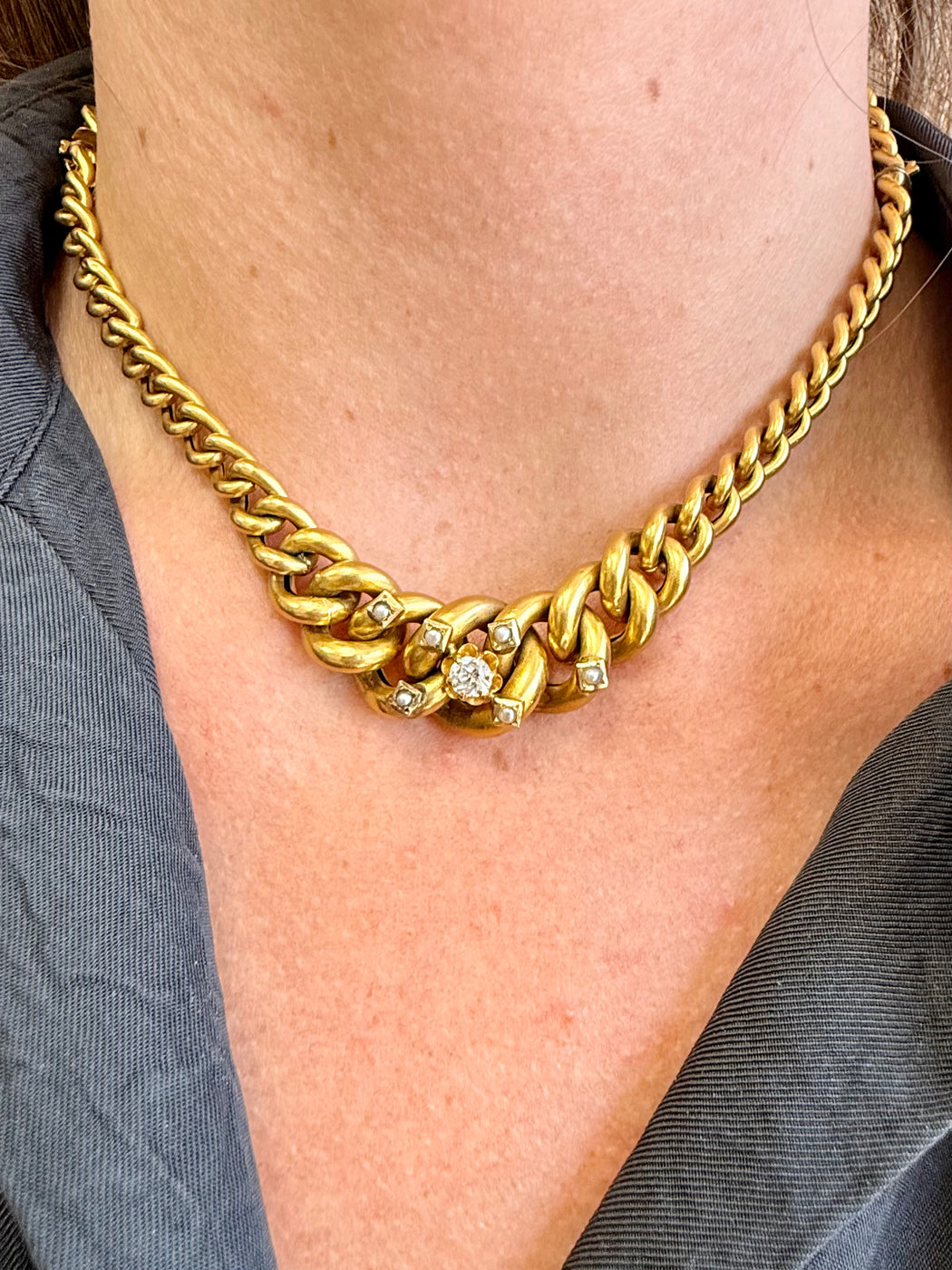 Victorian Curb Link Diamond Convertible Necklace/Bracelet, 18k