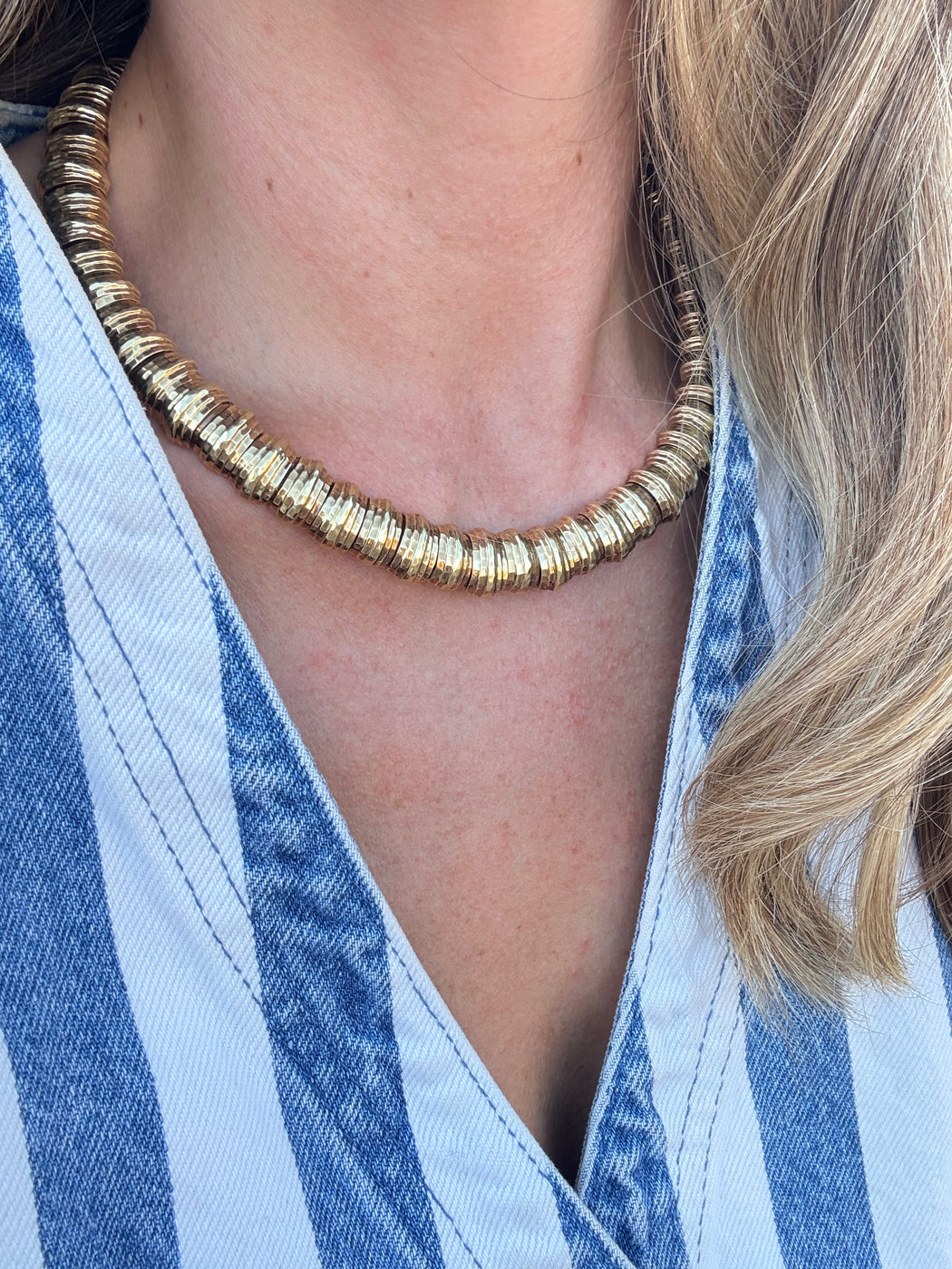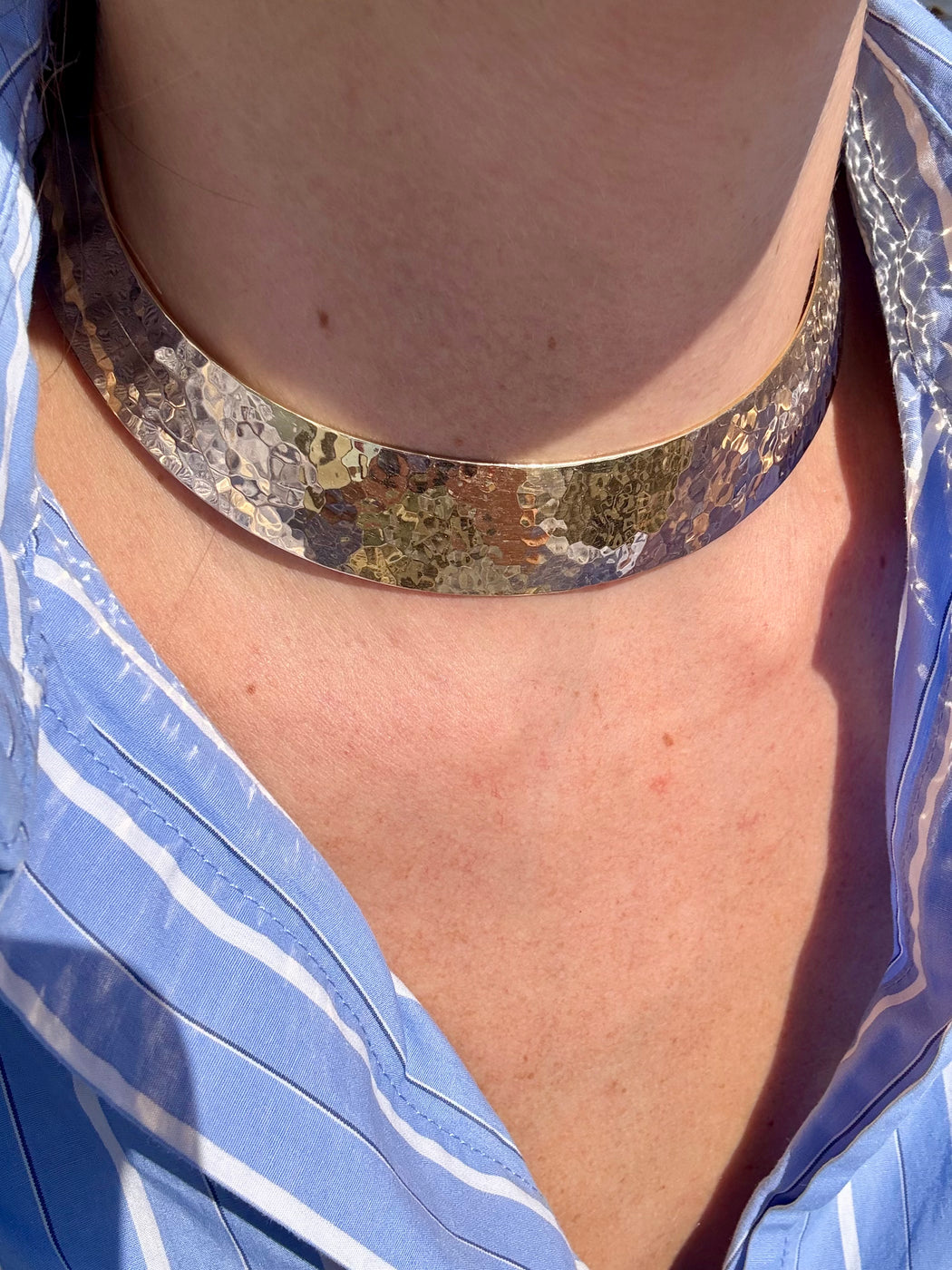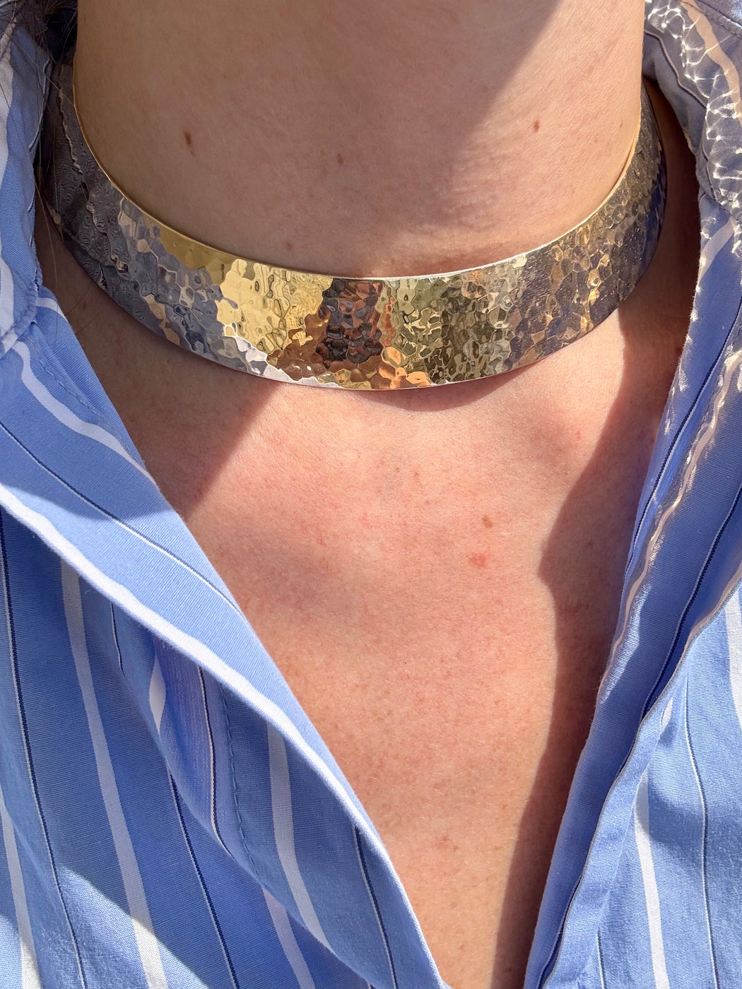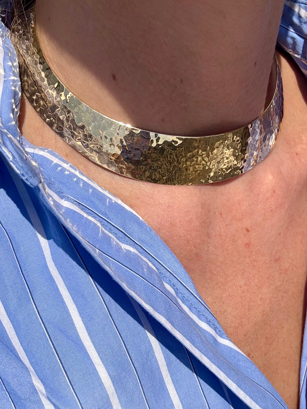 Wide Gold Collar Necklace, 14k