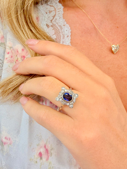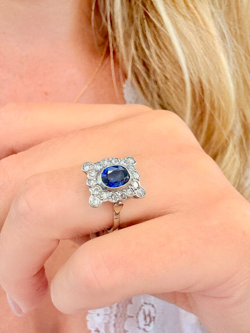 Art Deco Blue Sapphire & Diamond Ring, Platinum