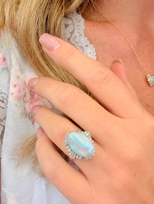 Opal & Diamond Ring, Two Tone 14k & Platinum