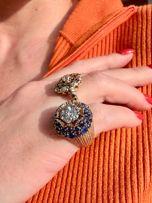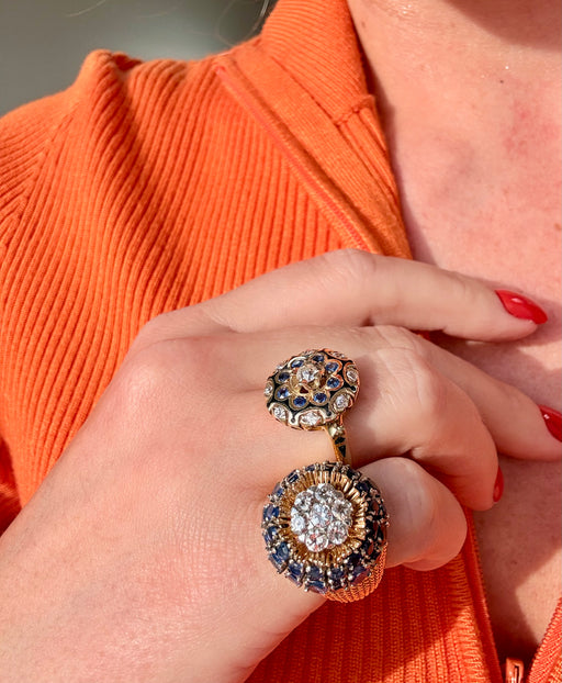 Diamond & Blue Sapphire Ring, Two Tone 18k & Platinum