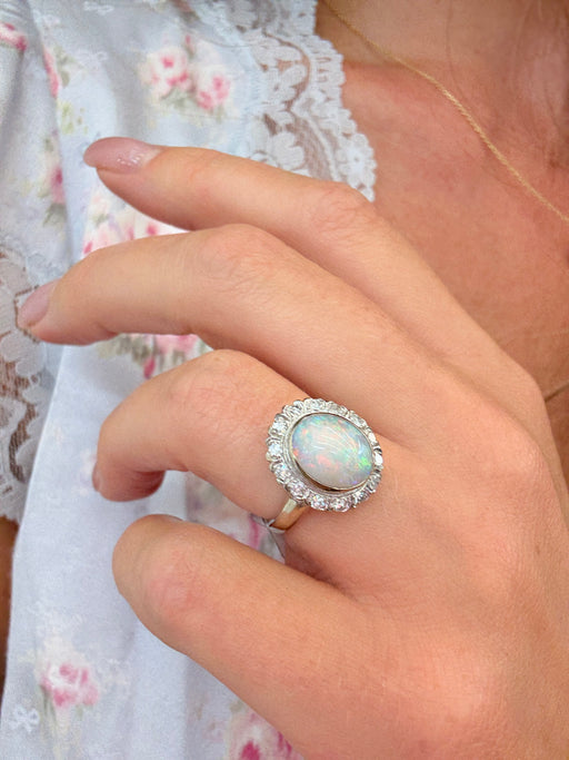 Opal & Diamond Ring, Two Tone 14k & Platinum