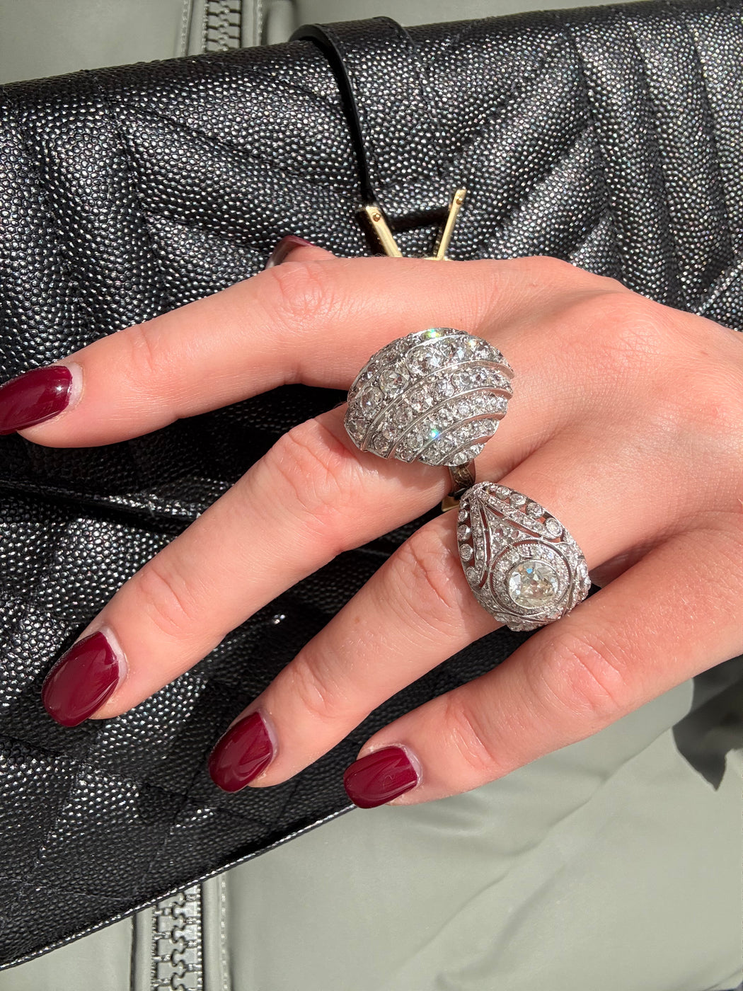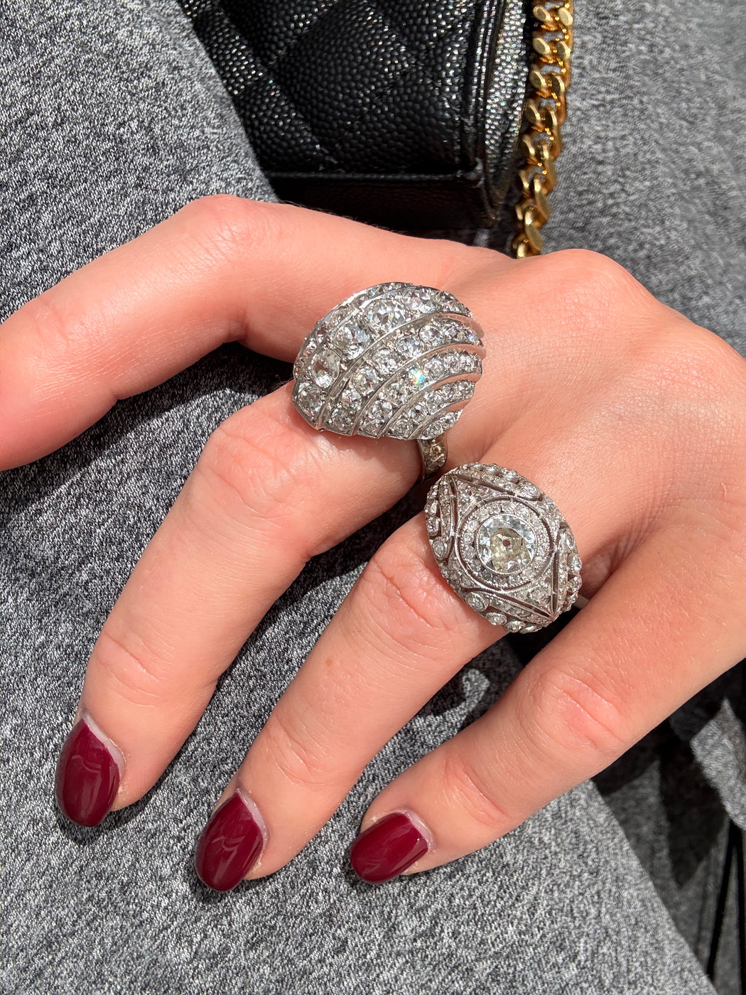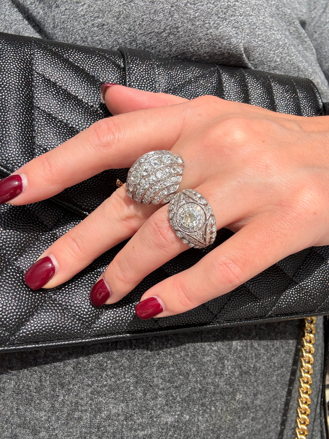 Art Deco 0.90ct Center Diamond & 3.00ctw Diamond Ring, Platinum