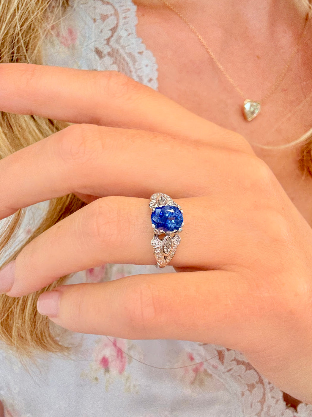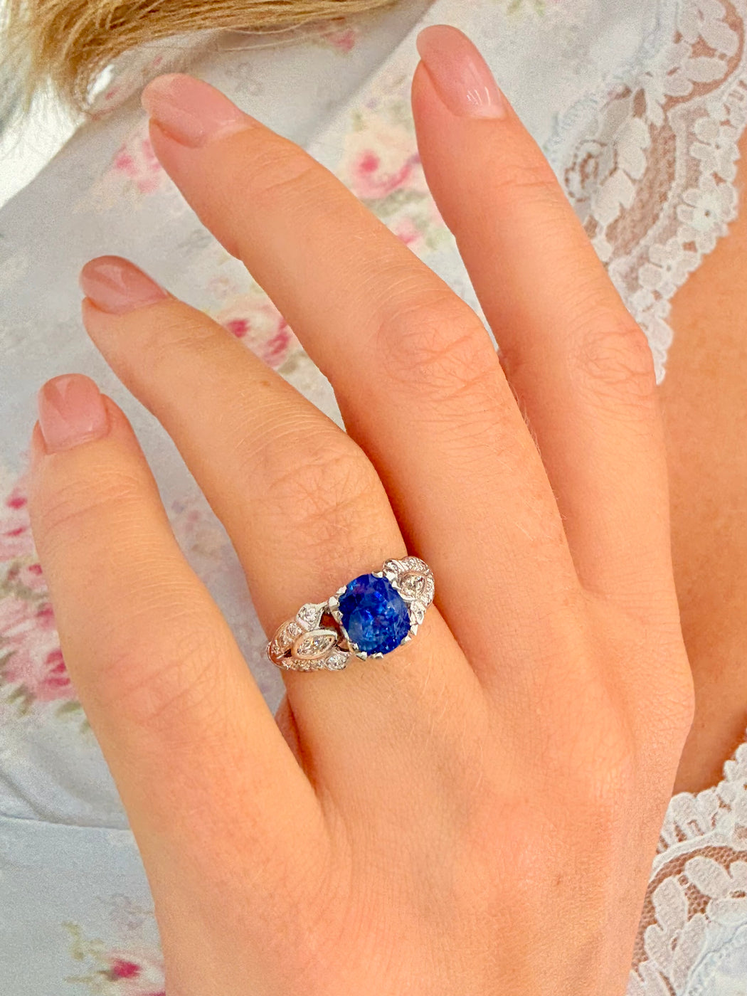 Art Deco Blue Sapphire & Diamond Ring, Platinum