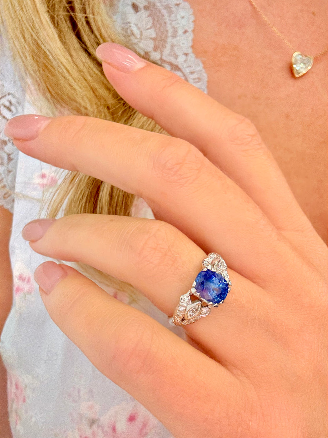 - Stones: Diamond & Blue Sapphire
