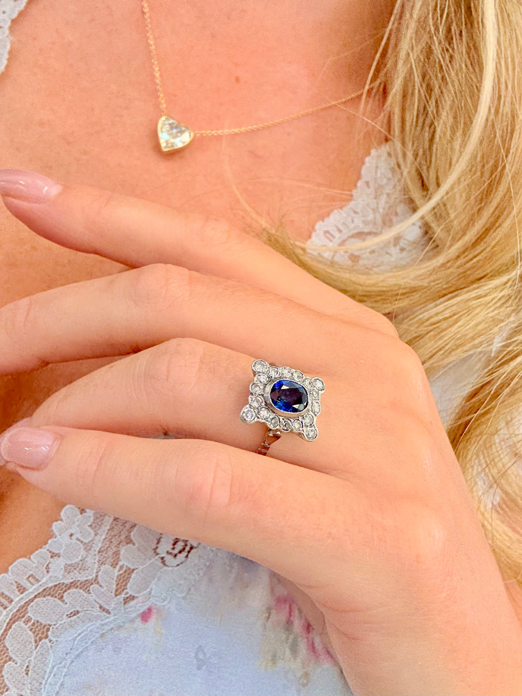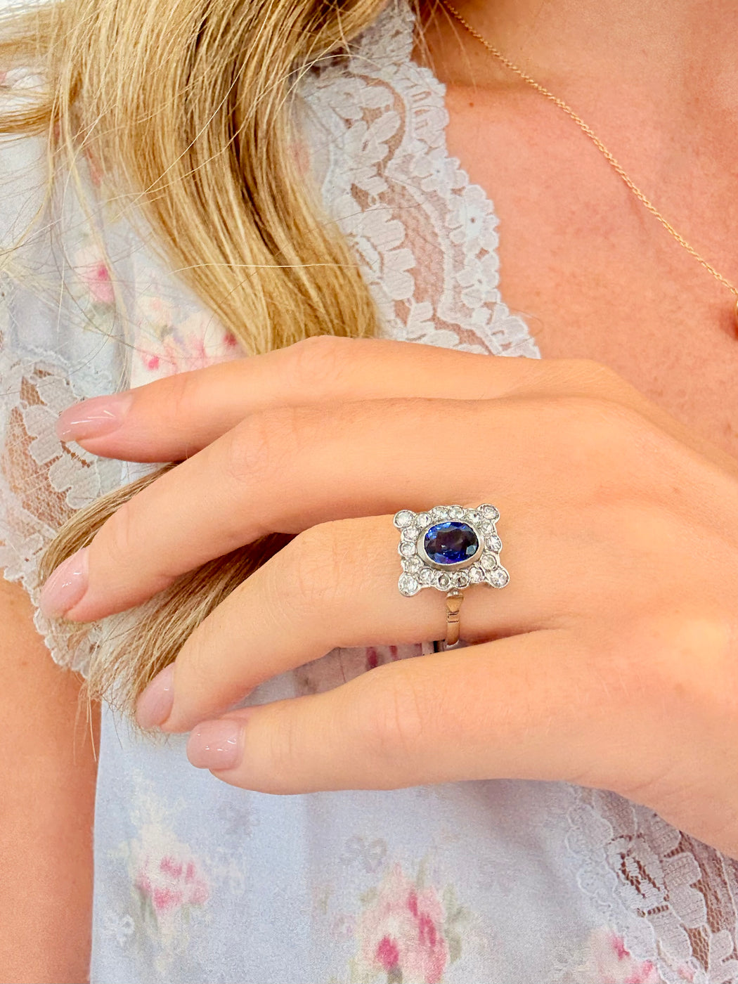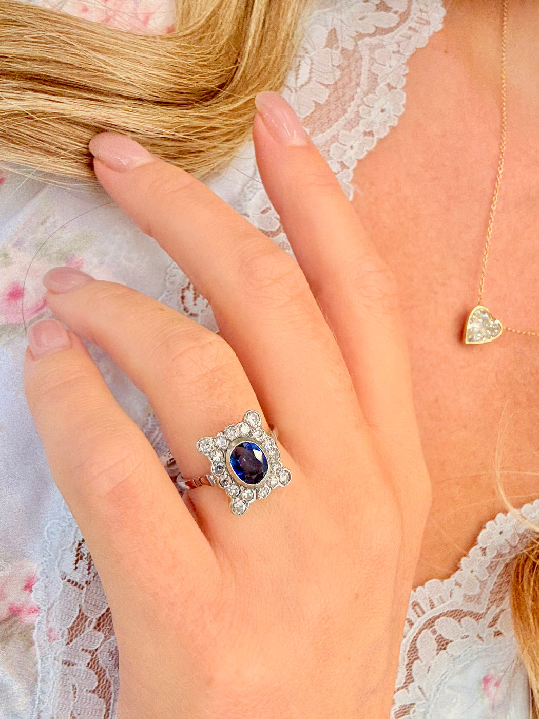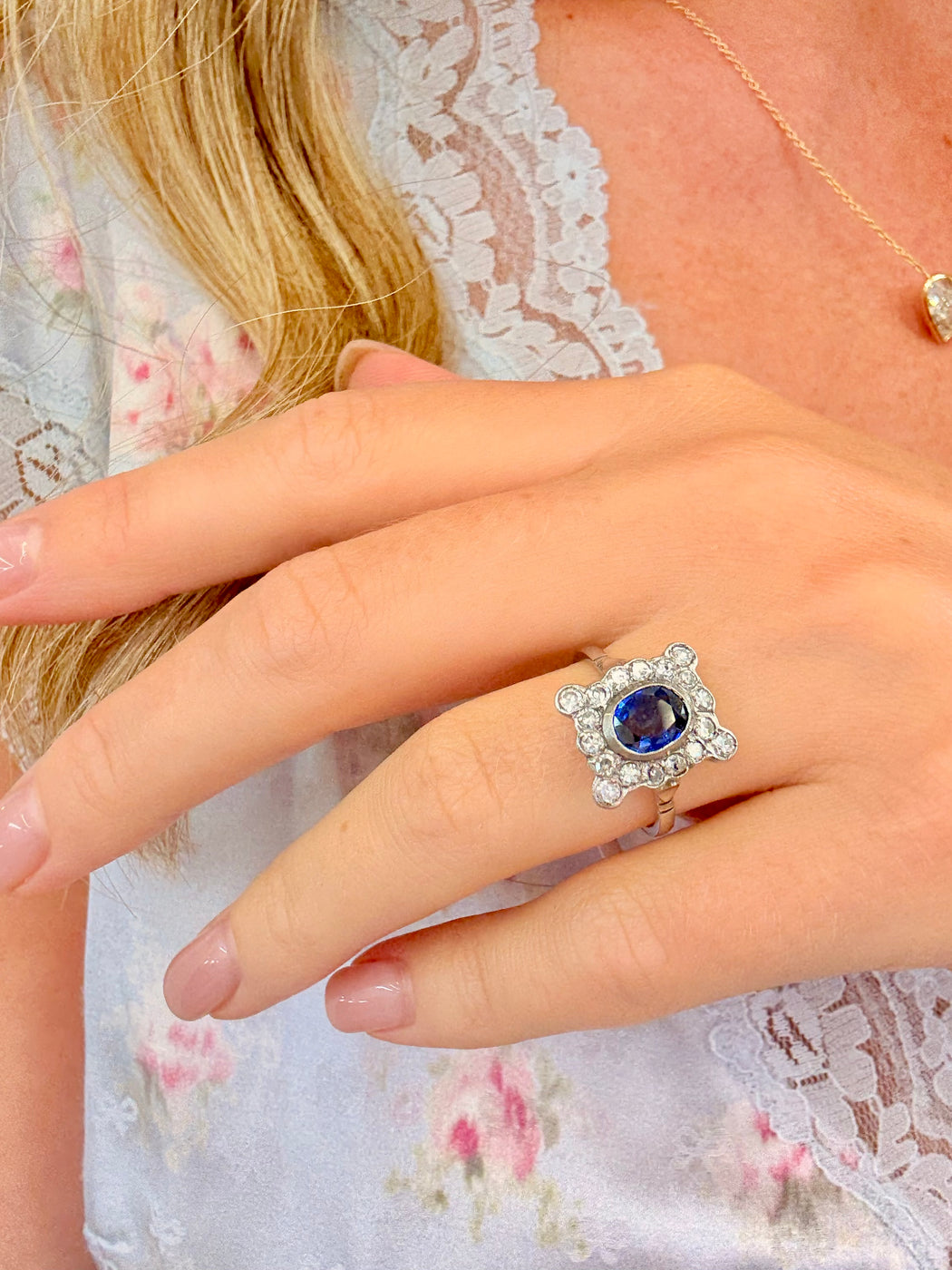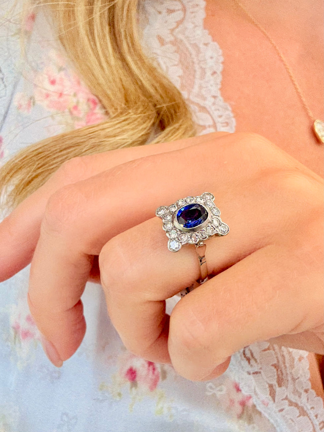 Art Deco Blue Sapphire & Diamond Ring, Platinum