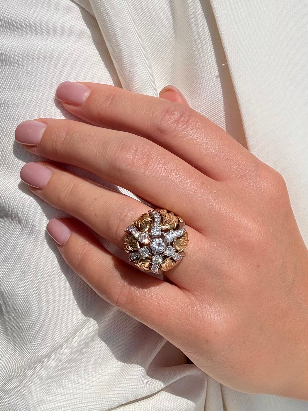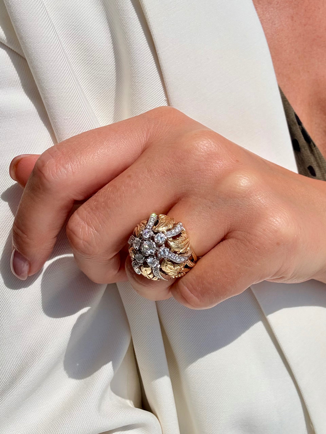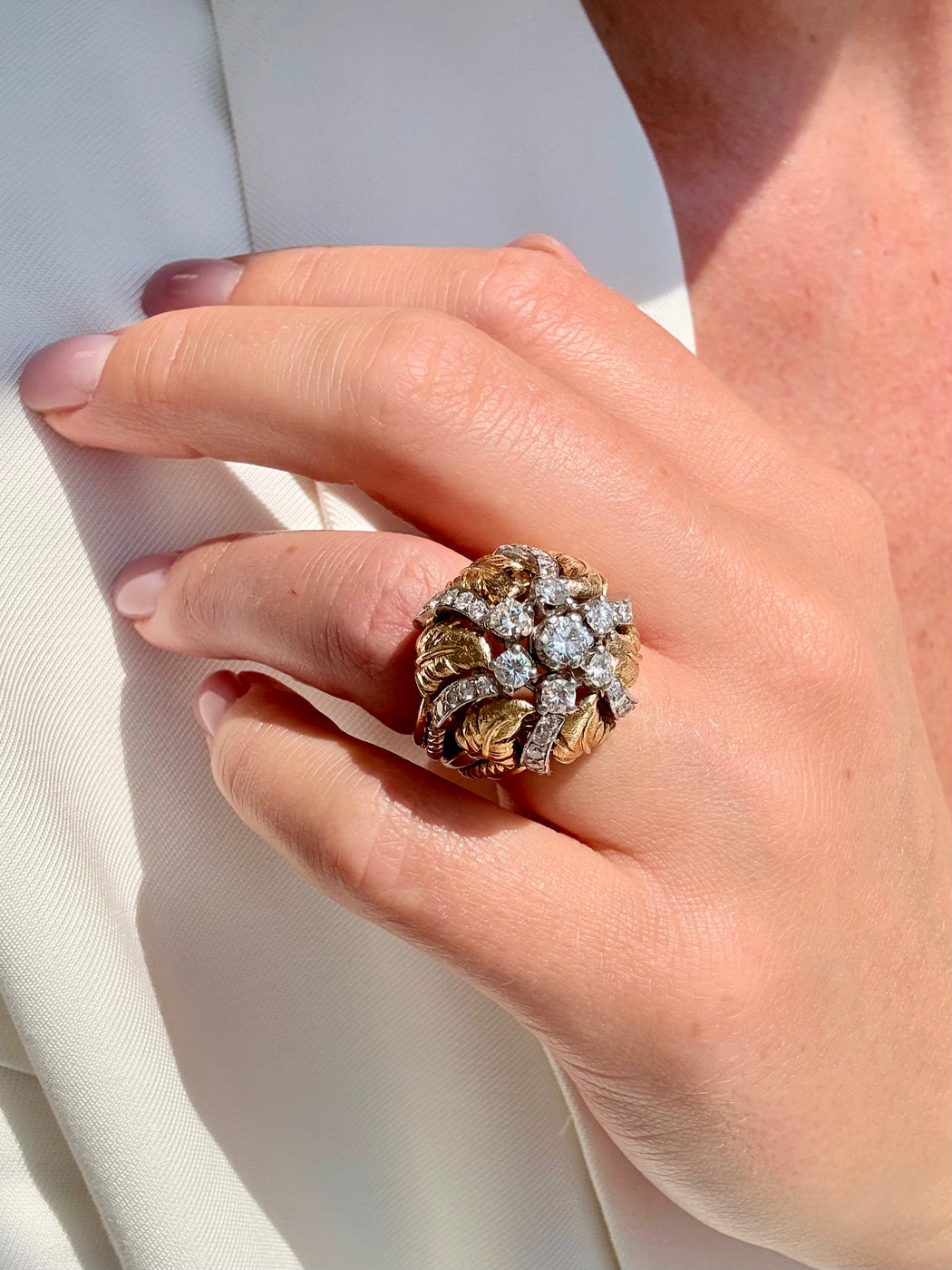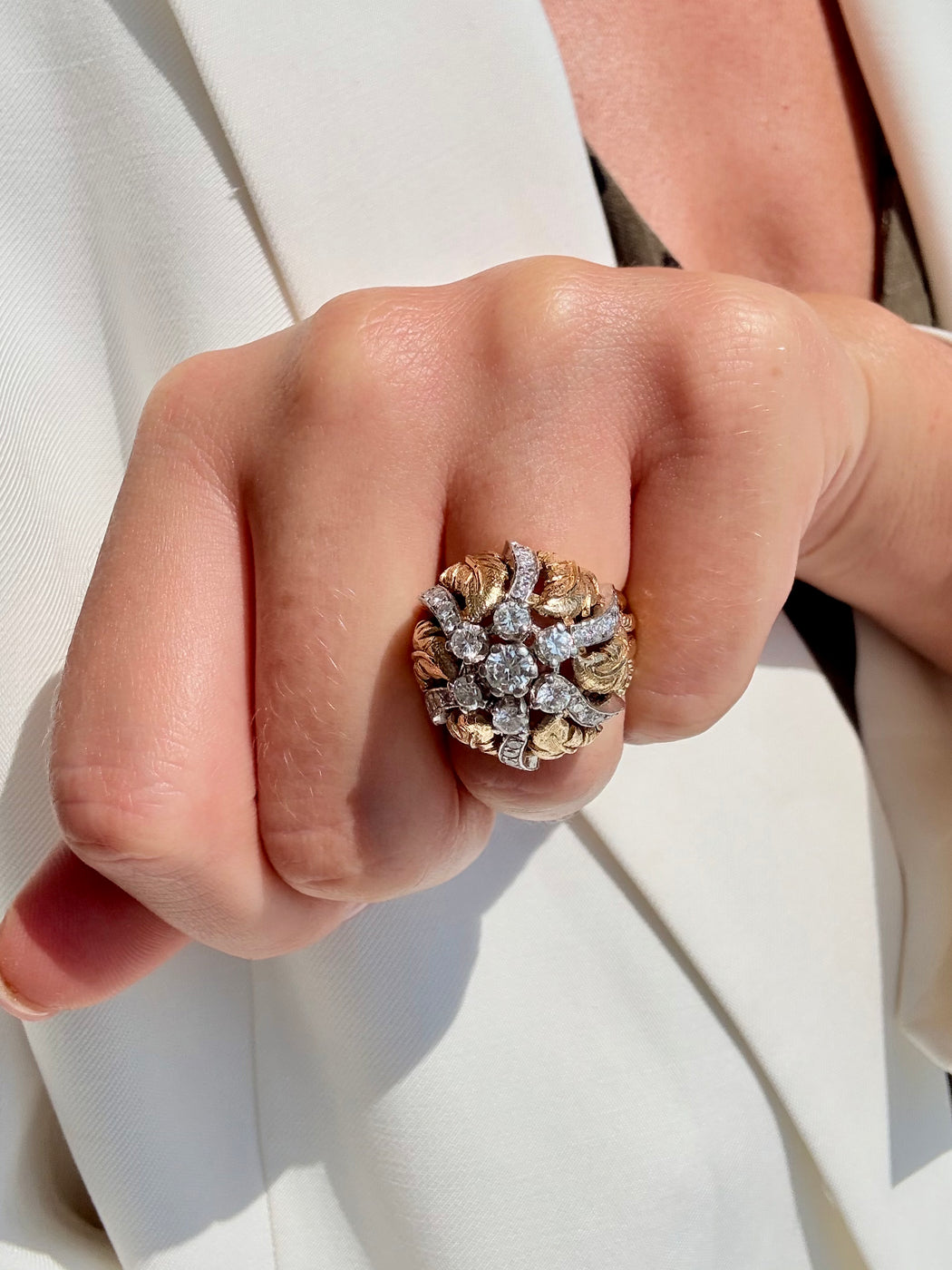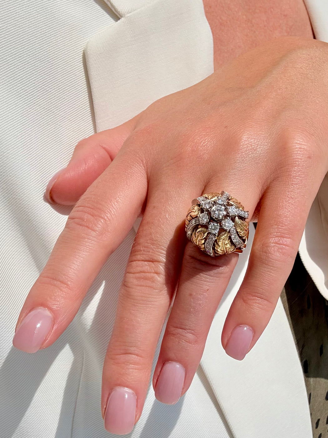 Bombe Diamond Dome Ring, Two Tone 18k & Platinum