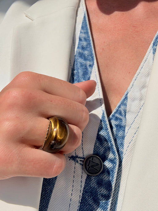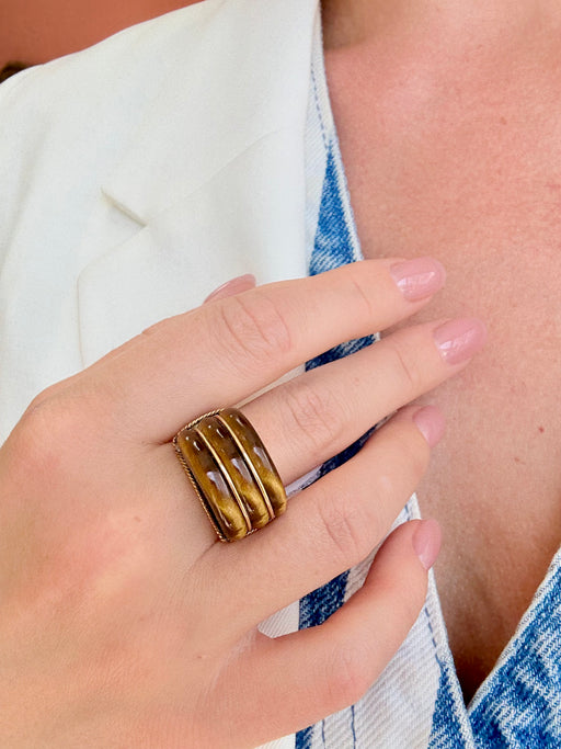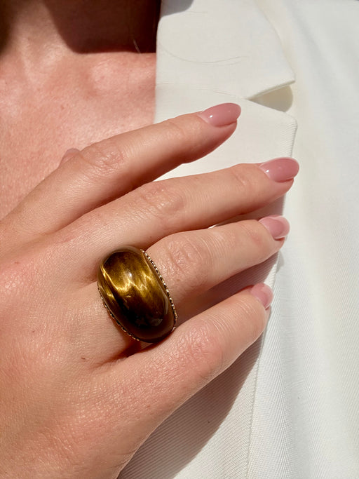 Tiger Eye Dome Ring, 14k