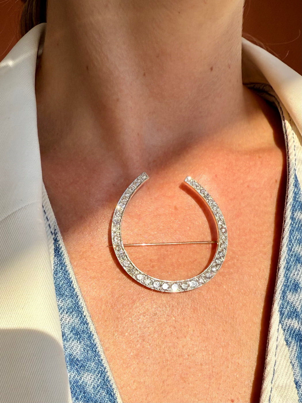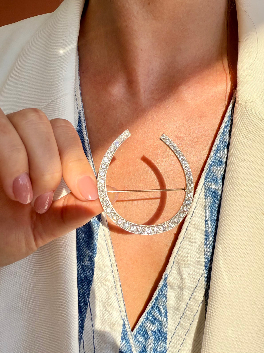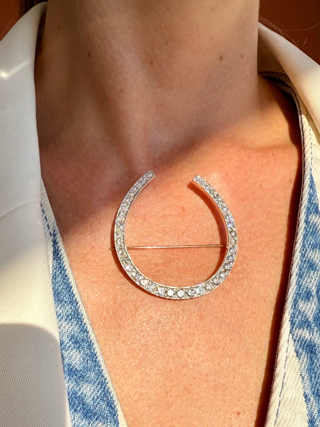 5.00ctw Diamond Horseshoe Pin, Platinum & 14k