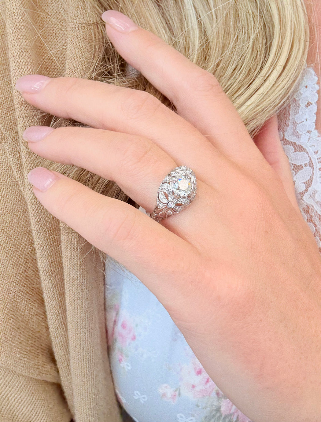 Art Deco 0.90ct Old Mine Cut Diamond Ring, Platinum