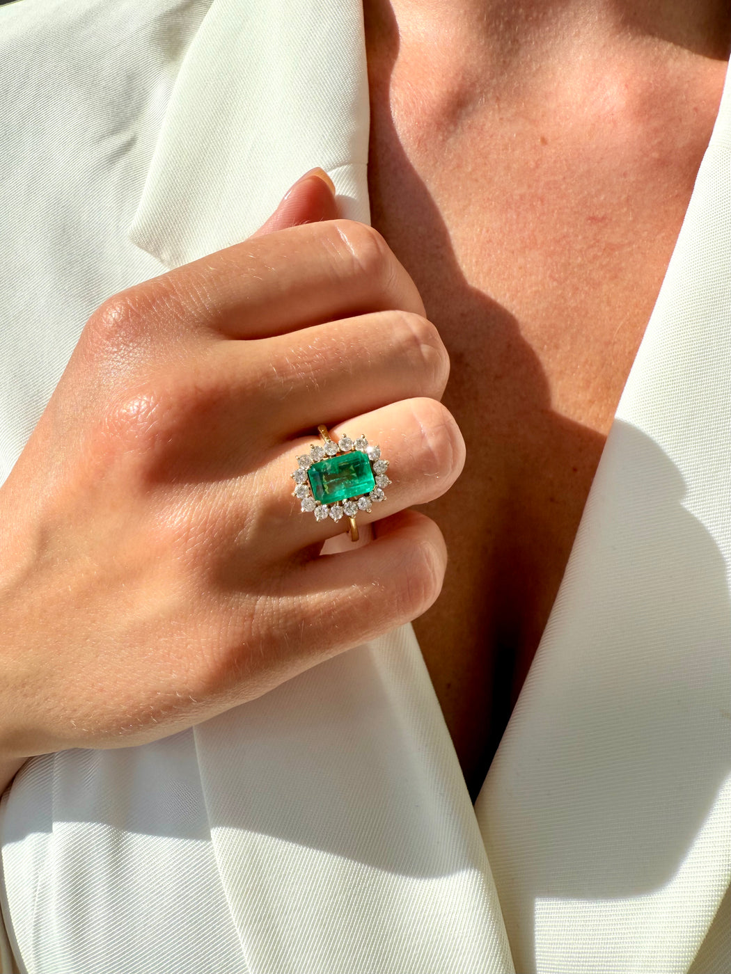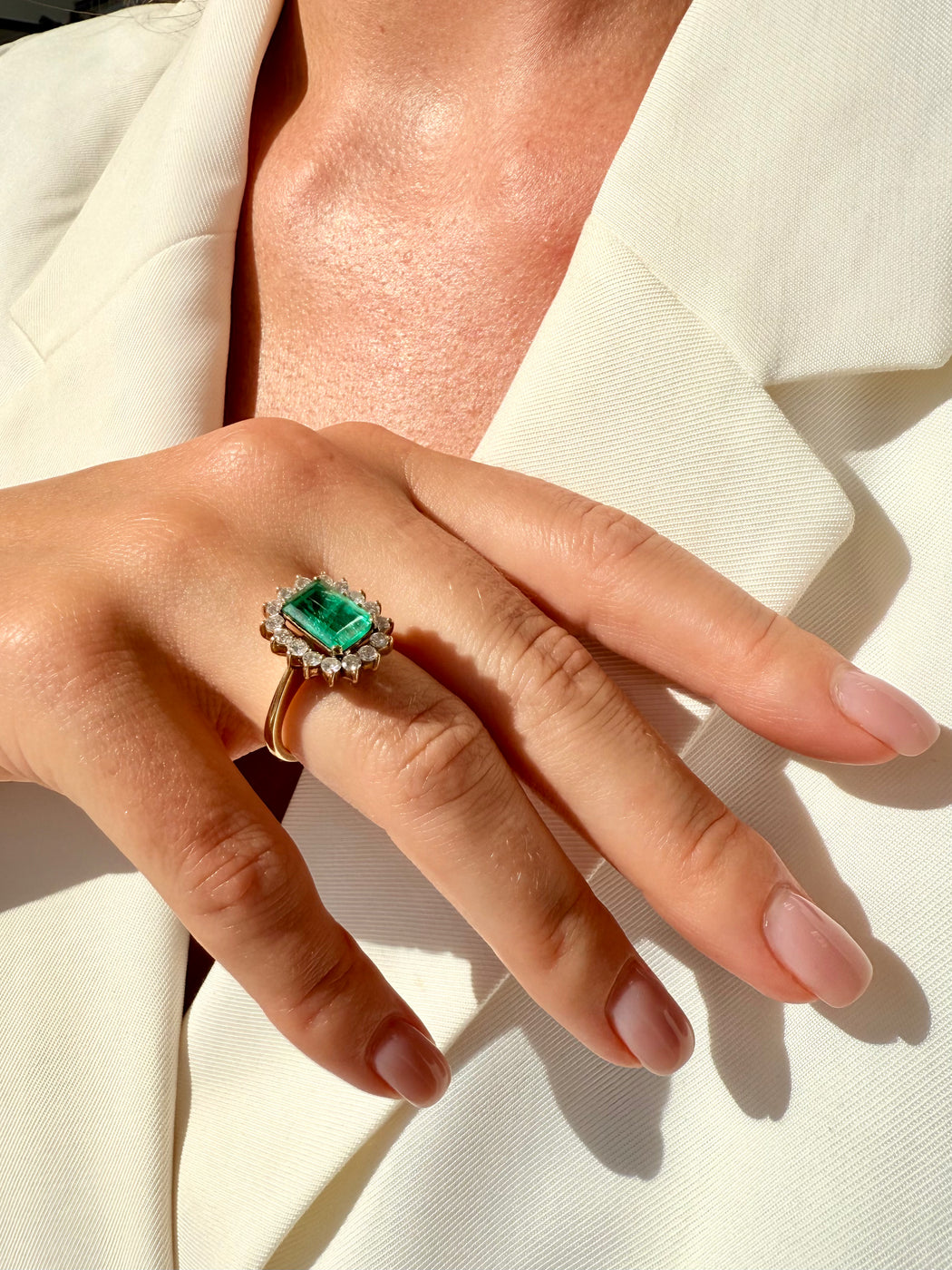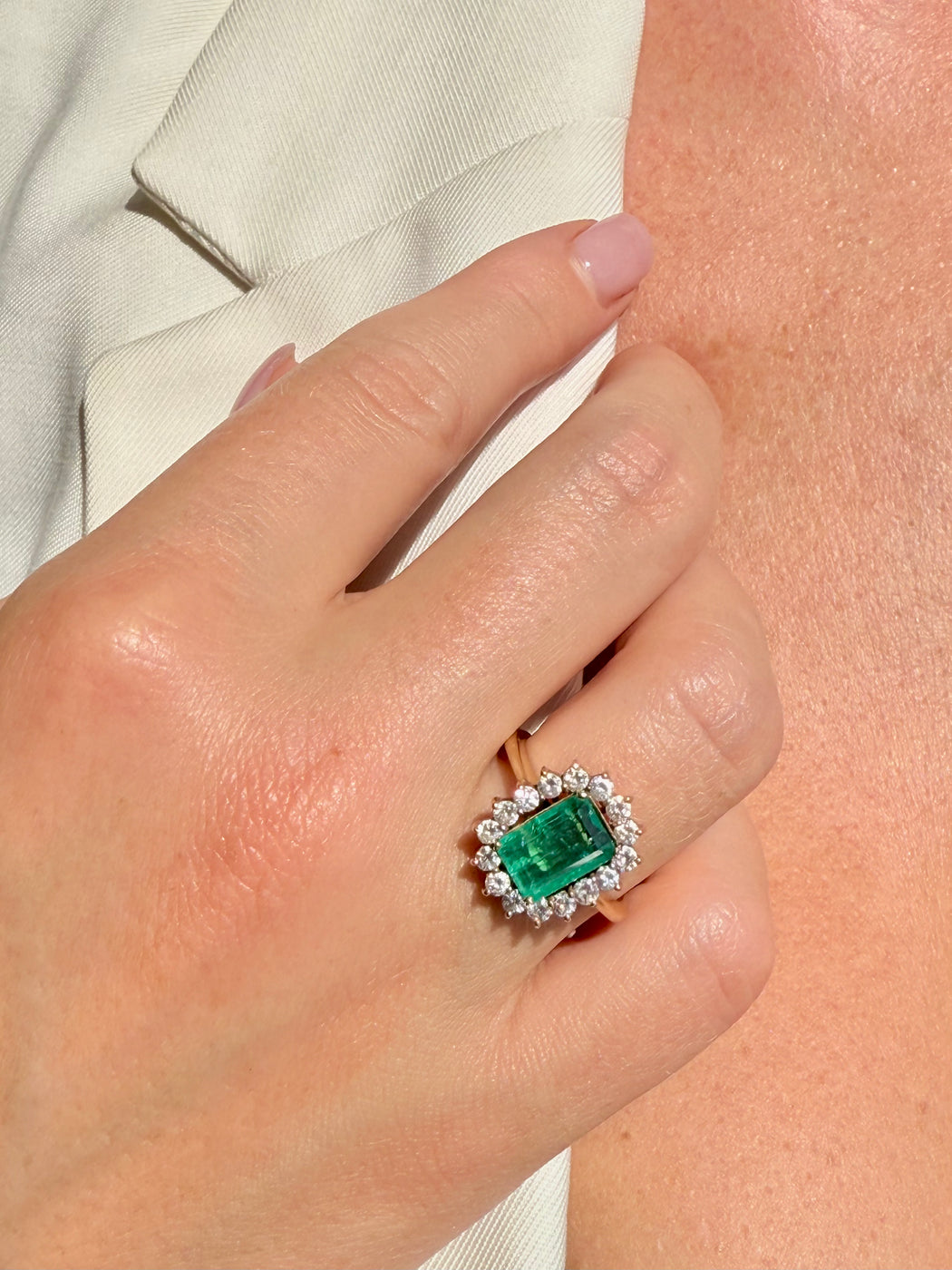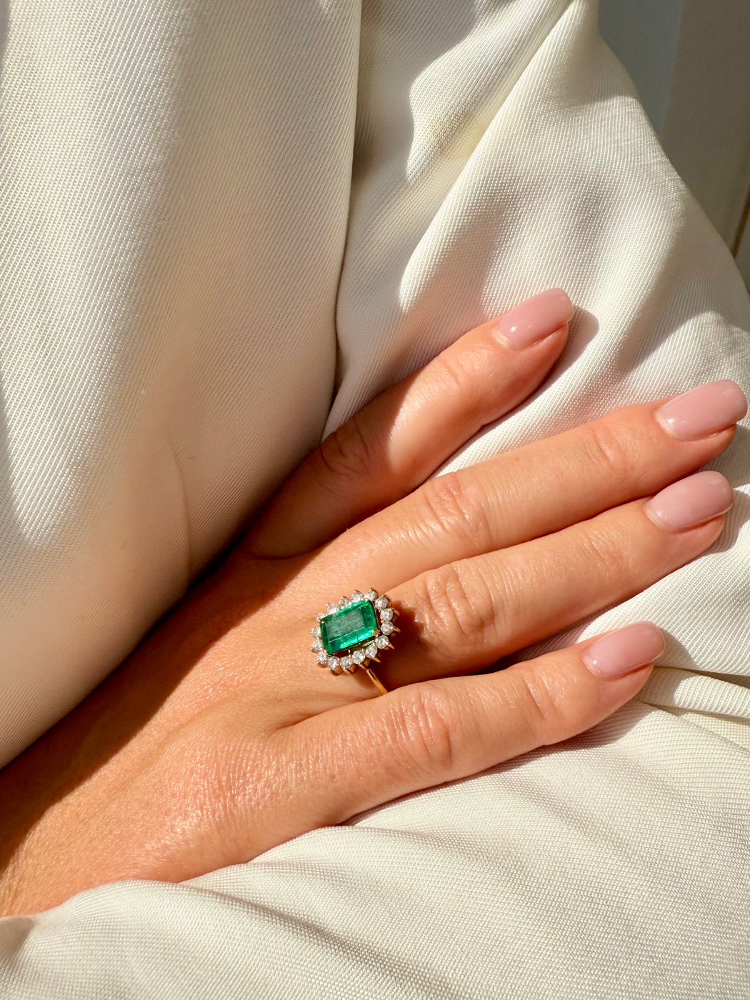 3.9ct Emerald & 1.75ctw Diamond Ring, 18k